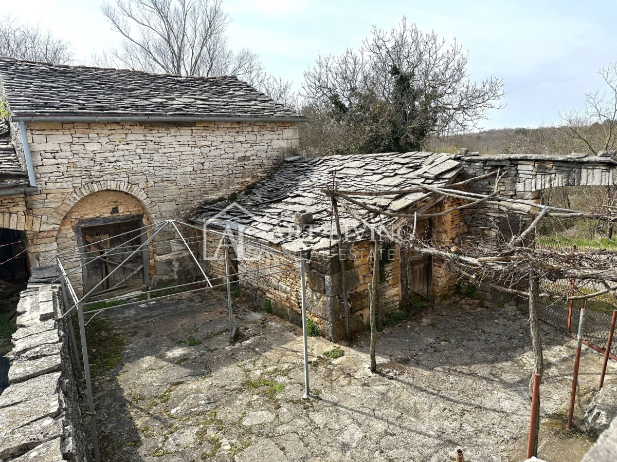 Prodaju se 2 starije autohtone istarske kuće (za restauraciju) sa 3 dodatna pomoćna objekta, smještene na mirnoj idiličnoj lokaciji, okružene prekrasnim istarskim krajolikom.