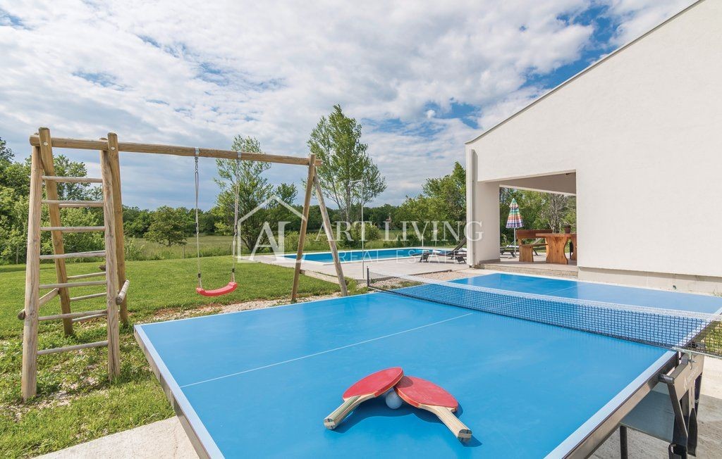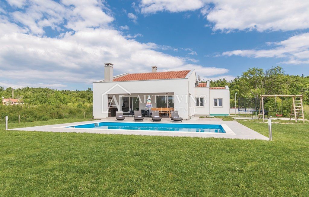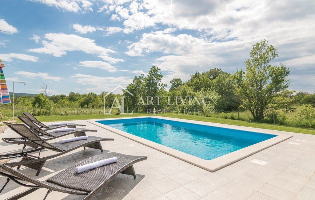 U mirnom i malenom mjestu udaljenom svega 3 km od Labina te 8 km od mora i najljepših istarskih plaža, okruženo čistom prirodom, na parceli od 1000 m2, smjestila se ova prekrasna prizemnica površine 100 m2 koja nudi odličan spoj moderne arhitekture, kvalitetnih materijala i ugodnog ambijenta.