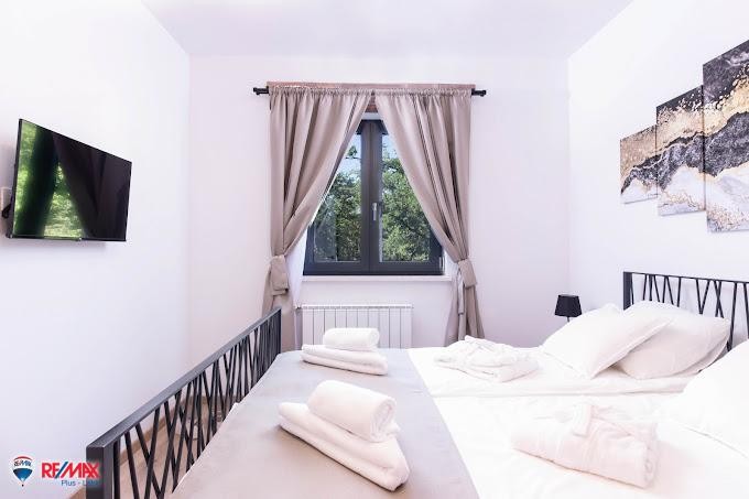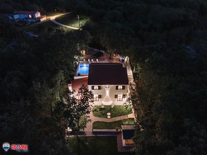 Atraktivna novoizgrađena vila na osami, okružena šumom i zelenilom smještena na parceli lijepe površine od 1300 m2.Stambena površina iznosi 150m2 i nudi moderno uređeni interijer sa 4 (četiri) spavaće sobe.Kuća se sastoji od prizemlja i kata, s time da se je glavni ulaz sa kata gdje se nalazi kuhinja, blagovaona i dnevni boravak te jedno kupatilo.Iz dnevnog boravaka pristupa se na terasu i vanjskom grijanom bazenu.Unutarnje stepenice vode u prizemlje kuće gdje se nalaze još dvije spavaće sobe i jedno kupatilo, te spremište u prostoru ispod stepenica.