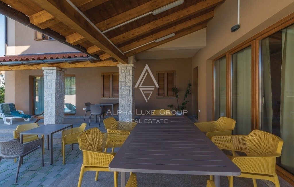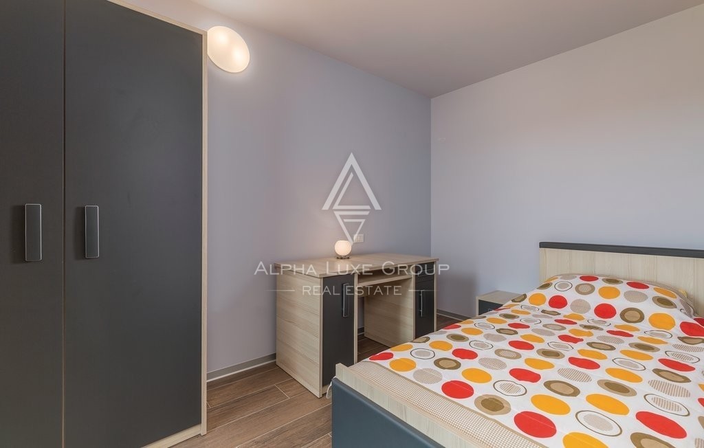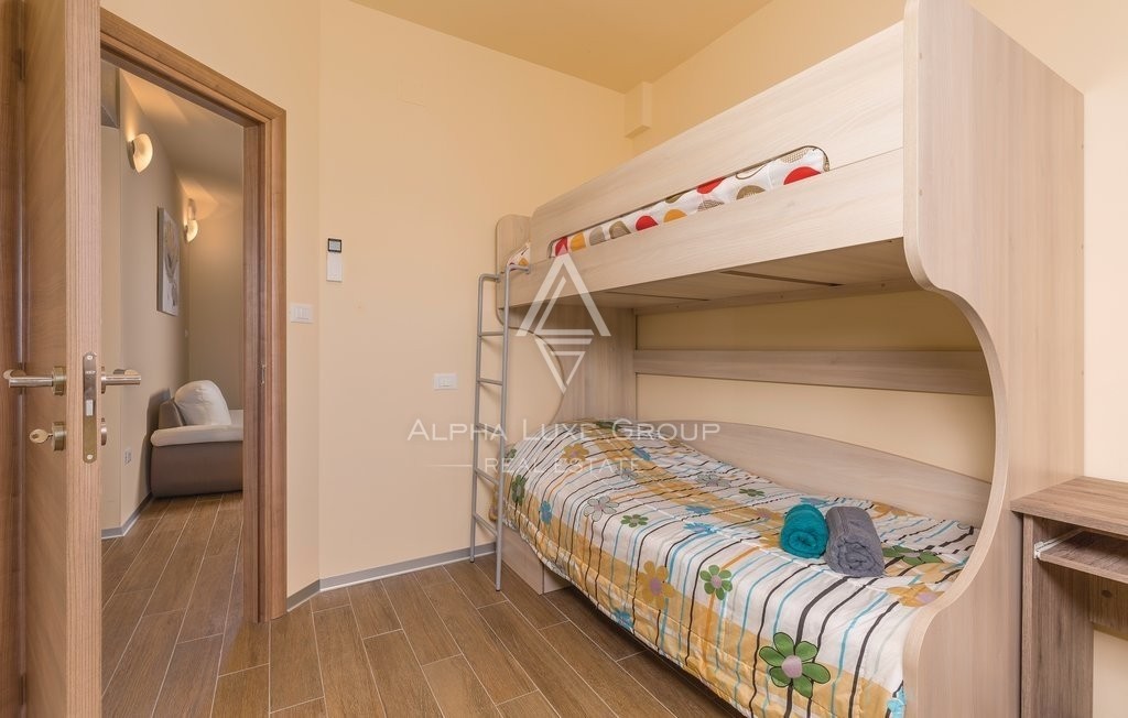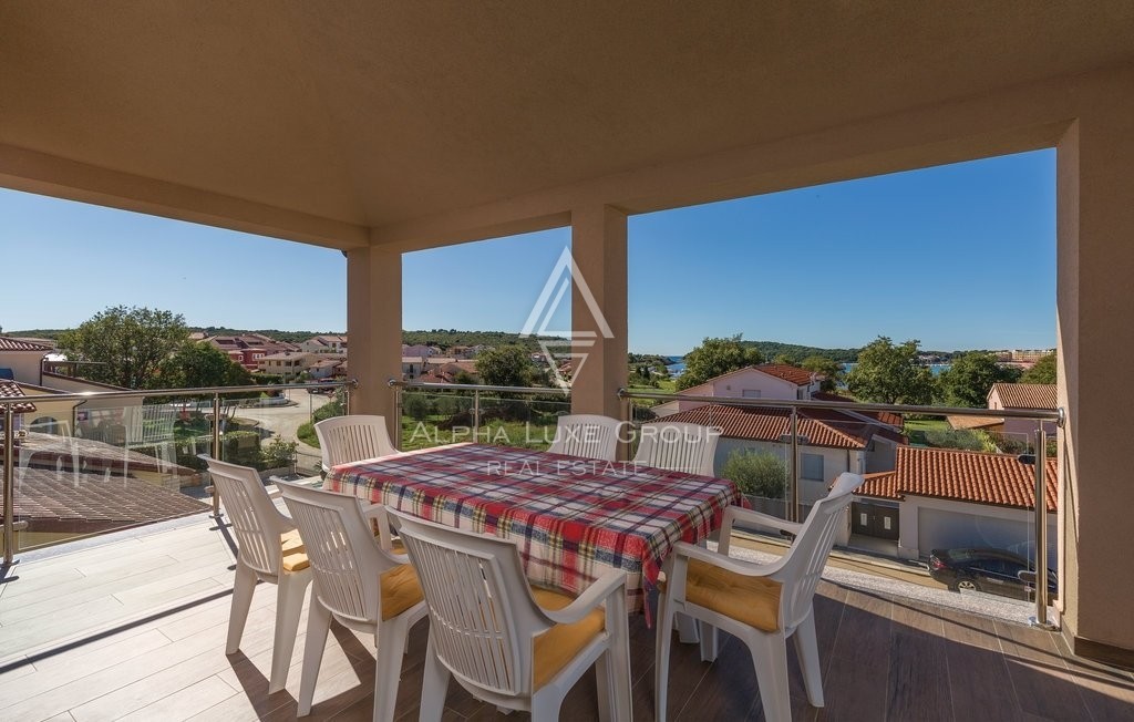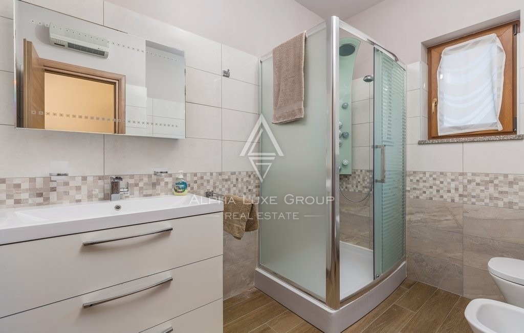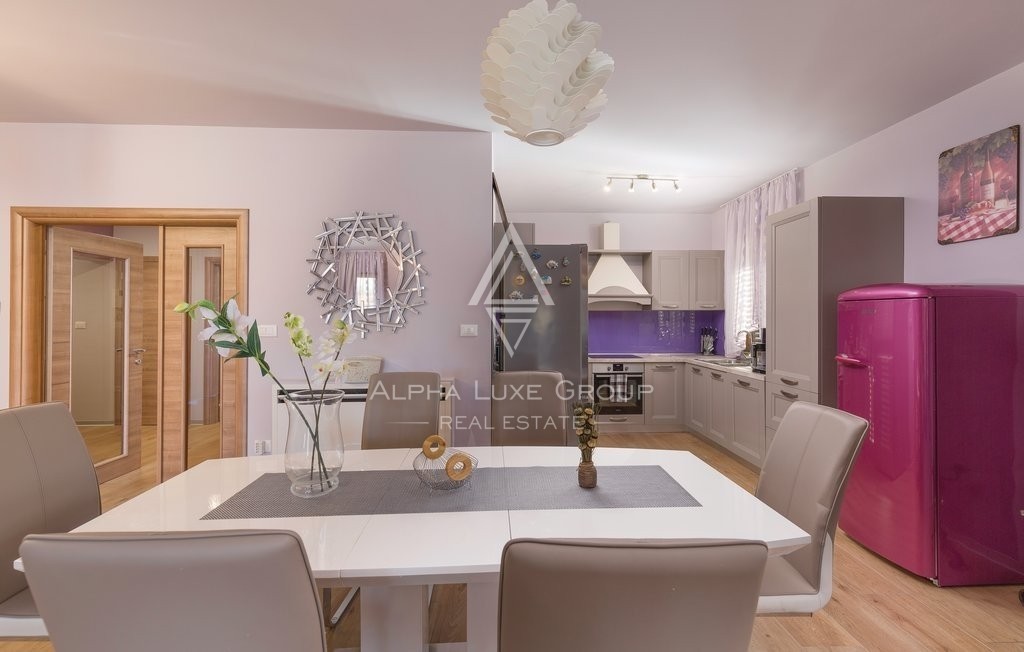 Otkrijte čar života u Banjolama, mirnom predgrađu Medulina, s ovim prostranim stanom od 185,40 m² koji je sada dostupan za kupnju. Ovaj prekrasno dizajnirani stan nudi veliki dnevni prostor koji se besprijekorno spaja s kuhinjom i blagovaonicom, čineći ga savršenim za opuštanje i zabavu. Stan uključuje privatni radni prostor, tri spavaće sobe, od kojih glavna spavaća soba ima vlastitu kupaonicu, te dvije dodatne kupaonice i praktičnu ostavu. Raspored je obogaćen obiljem prirodnog svjetla, stvarajući toplu i pozivajuću atmosferu.