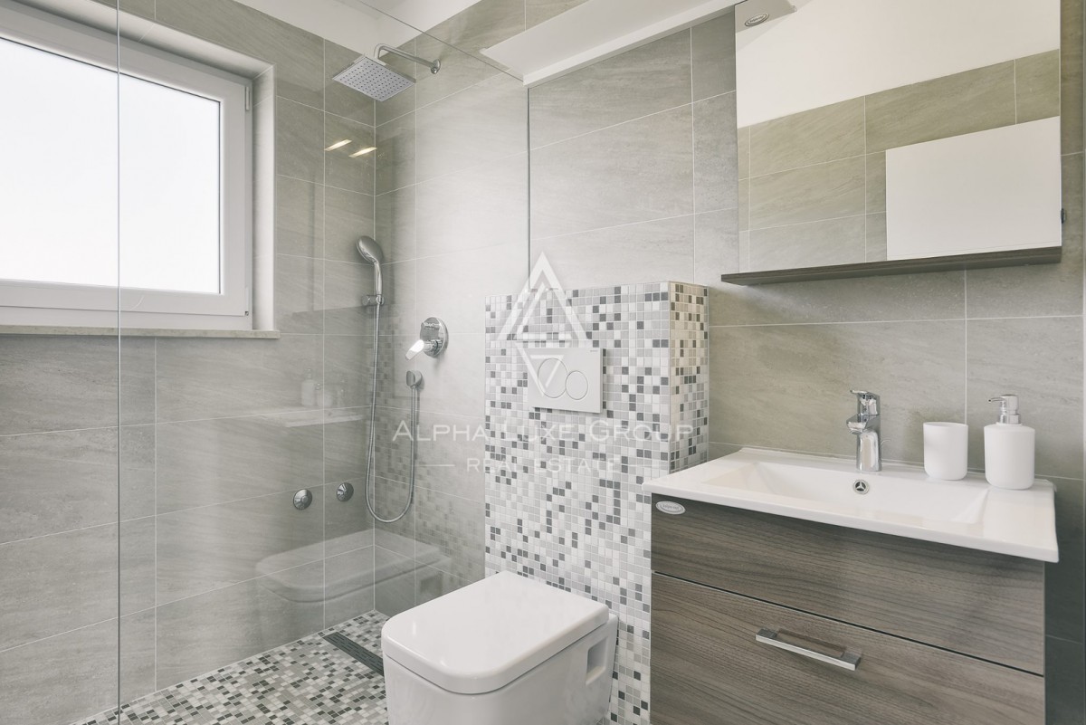 Obje vile imaju vlastiti vrt, parkirna mjesta i gornje terase s djelomičnim pogledom na more. Izgrađene su od visokokvalitetnih materijala, s modernim dizajnom koji osigurava udobnost i stil tijekom cijele godine.