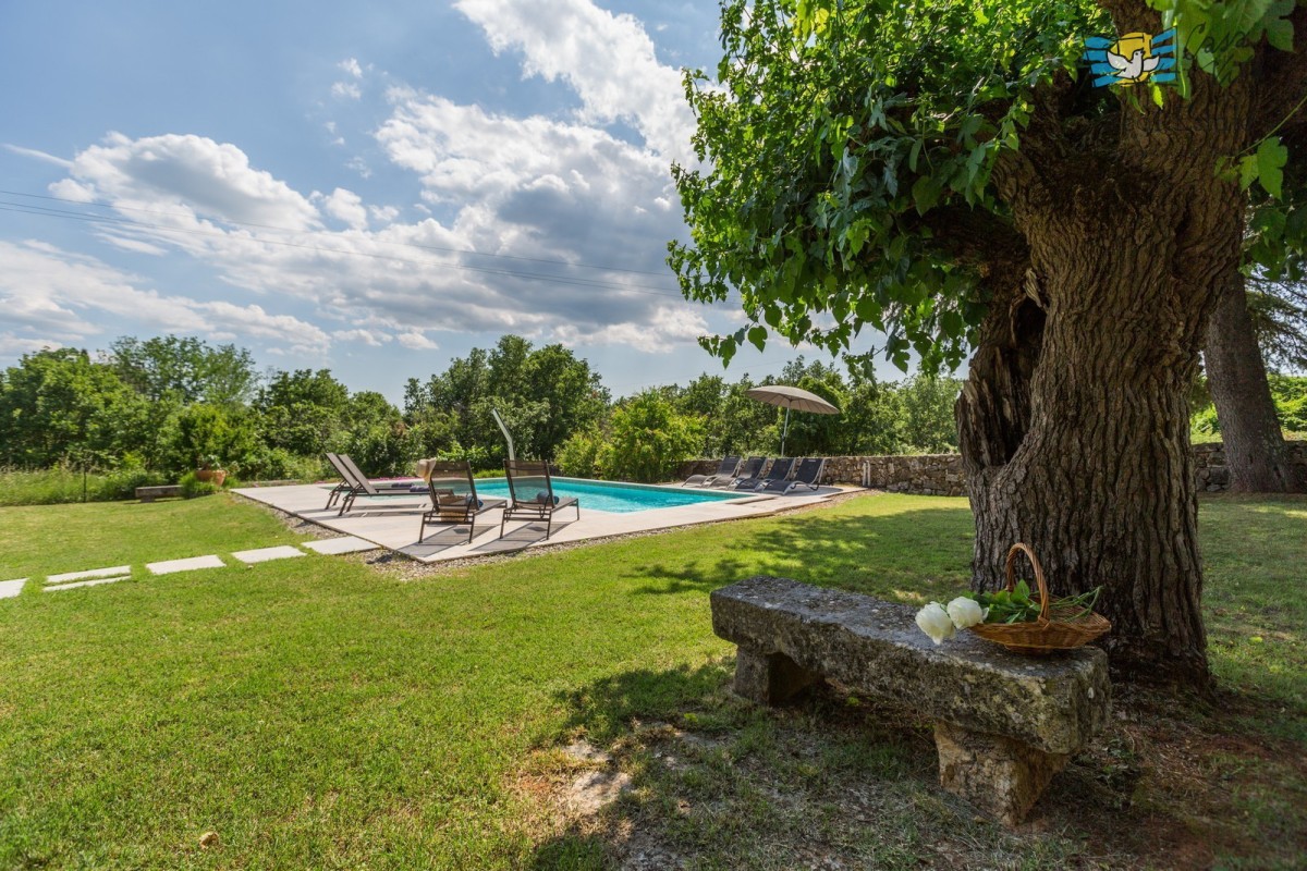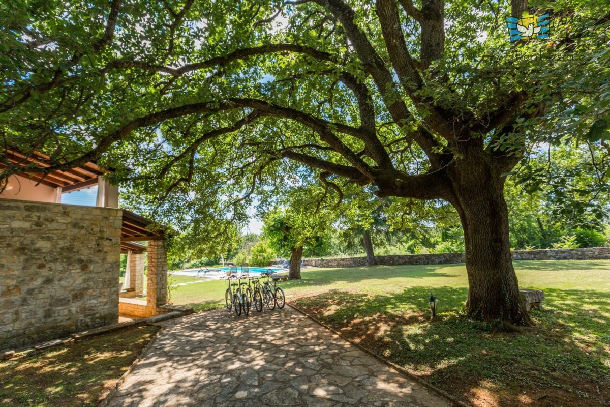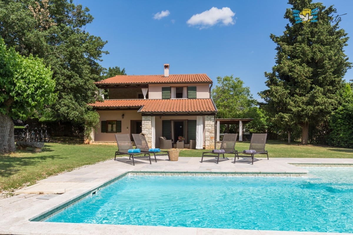 Šarmantna kamena vila smjestila se na rubu građevinske zone jednog malog istarskog autohtonog mjesta nedaleko od Poreča (12 km). Sagrađena je prije 1968. godine, no kompletno obnovljena 2009. godine. Okružena je prirodom, te ima prostranu okućnicu od 1430 m2. Na ulazu u dvorište ju krasi stoljetni hrast. Kuća se sastoji od dvije etaže. U prizemlju je smješten ulazni hodnik, kupatilo, dnevni boravak, blagovaona, spavaća soba i kuhinja. Sve prostorije u prizemlju imaju komunikaciju sa vrtom, te kuhinja ima i izlaz na ljetnu kuhinju koja se nalazi u bočnom dijelu kuće. U dnevnom boravku se nalazi kamin, kao i u ljetnoj kuhinji. Na katu su smještene još dvije spavaće sobe i jedna kupaona, te prostrana natrkivena terasa. U vrtu se nalazi bazen od 32 m2 sa dodatkom za djecu (plitka voda), tuš, vrtna kućica, ljetna kuhinja sa prostorom za druženje, parkirna mjesta, te prostrana zelena površina. Cijela okućnica je ograđena. Grijanje je regulirano centralnim sistemom na plin i kaminom, dok se za hlađenje koriste klime. Postoji i centralni bojler za toplu vodu. Fasada je obnovljena prije 3 godine. Kuća je idealna za turistički najam, no obzirom da ima centralni sustav grijanja, pogodna je i za cijelogodišnje življenje. Nekretnina je dostupna odmah!