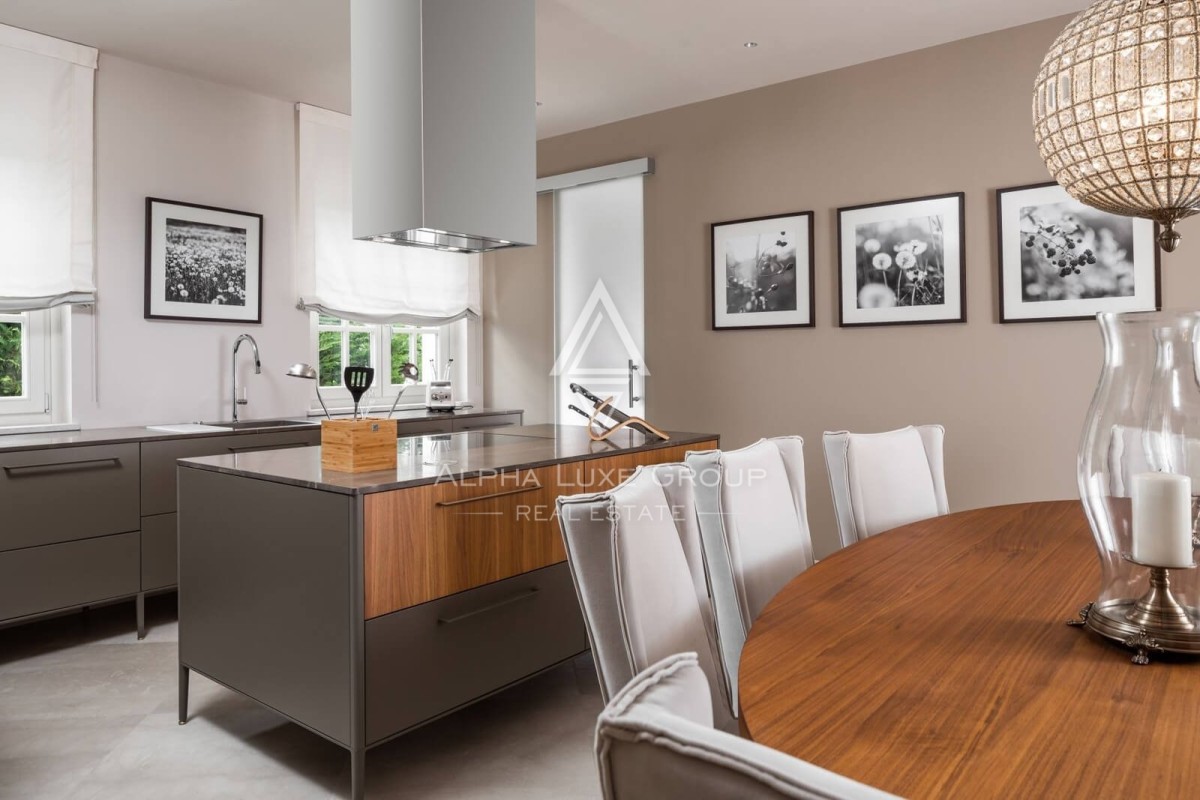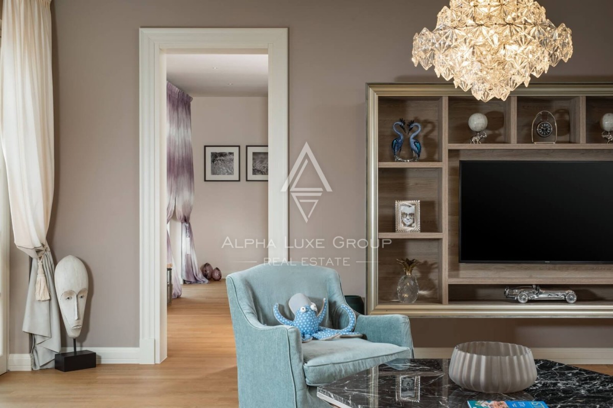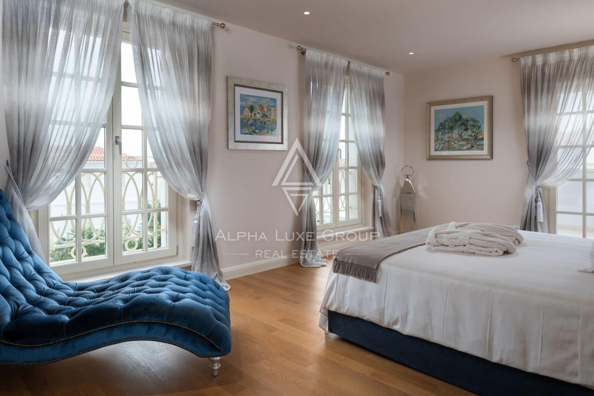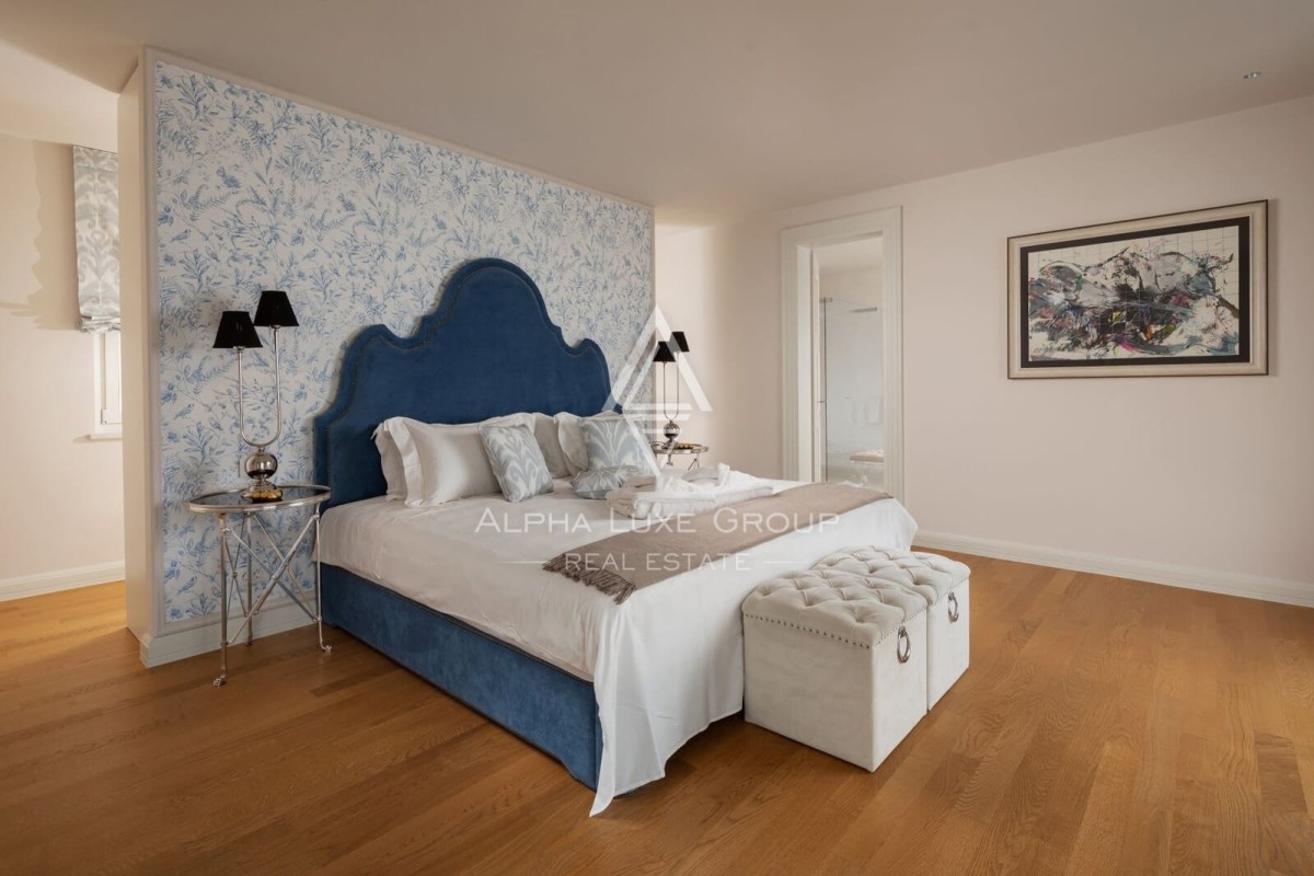 Luksuzna unutrašnjost osmišljena je s pažljivo odabranim detaljima, uključujući umjetnička djela hrvatskih umjetnika, unikatne lustere i mediteranske boje koje pružaju osjećaj smirenosti i šarma. Vanjski sadržaji, poput blagovaonskog prostora, roštilja i mirnog prostora uz bazen, čine ovu vilu savršenim utočištem za opuštanje i druženje.