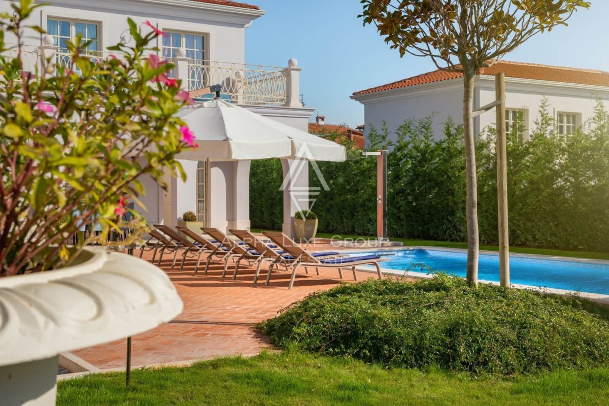 Smještena u šarmantnoj općini Tar-Vabriga, ova luksuzna vila nudi savršeni spoj elegancije, privatnosti i blizine Jadranskog mora. Prostire se na prostranoj parceli od 945 m², dok sama vila ima 348 m² stambenog prostora. Sadrži ulazni hodnik, modernu kuhinju s otvorenim dnevnim boravkom koji vodi na terasu, te bazen od 36 m² okružen prekrasno uređenim vrtom. Nekretnina uključuje četiri elegantne spavaće sobe, svaka s vlastitom kupaonicom, i krovnu terasu s nevjerojatnim pogledom na more.