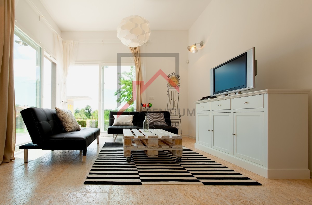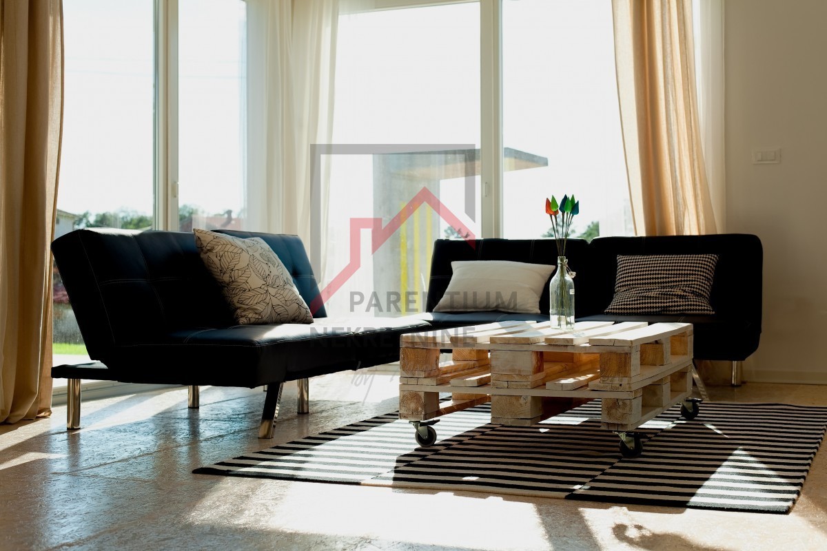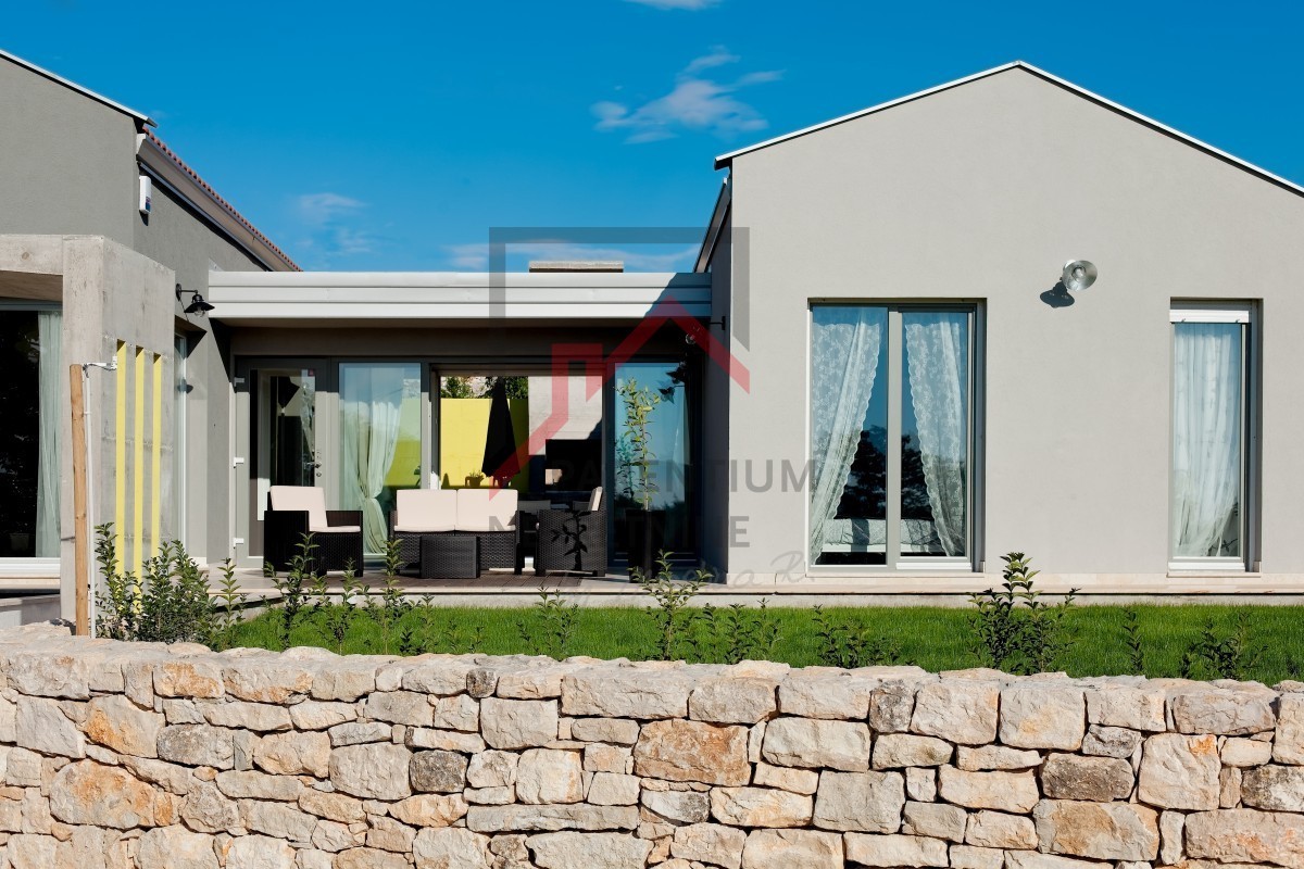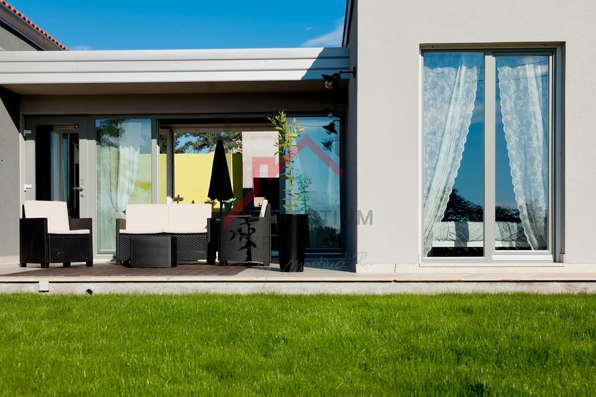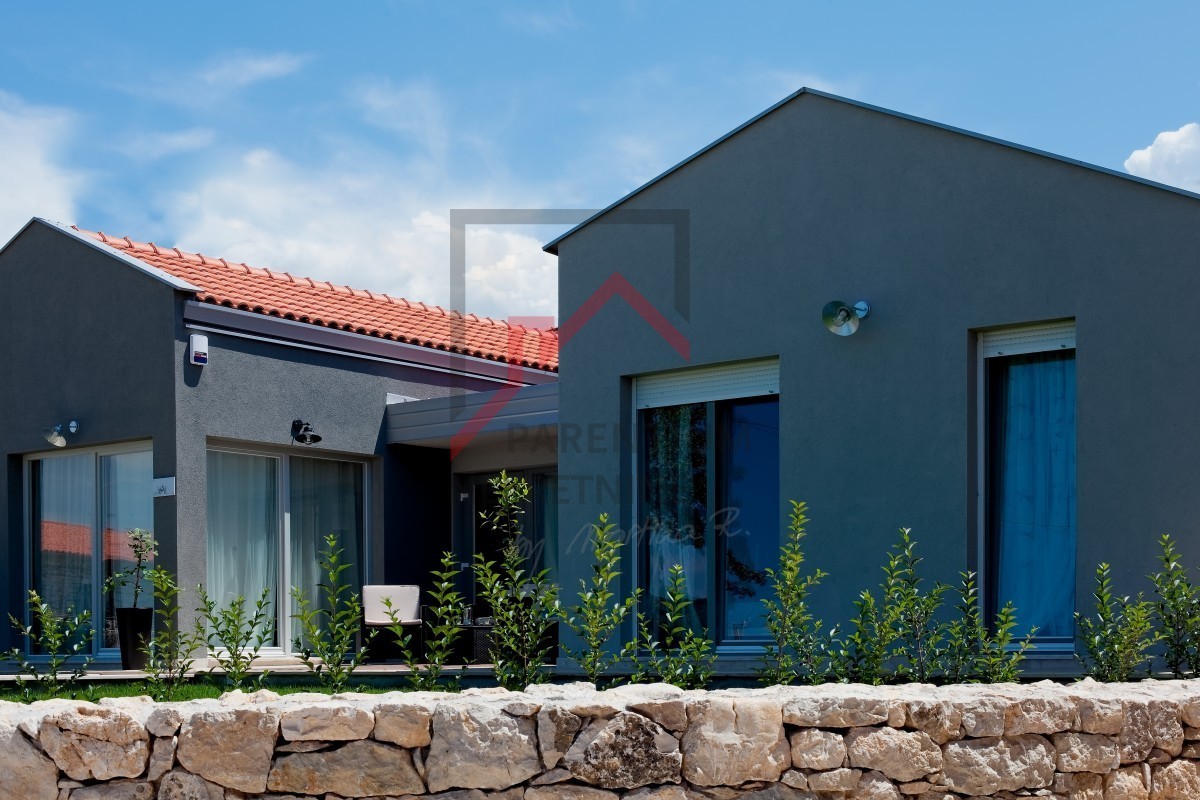 Prodaje se elegantna prizemnica s bazenom, smještena u mirnom i zelenom naselju, samo 4 km od kristalno čistog Jadranskog mora i popularnih porečkih plaža.