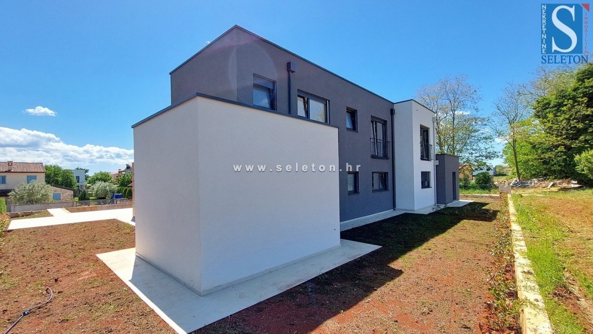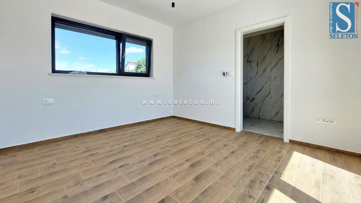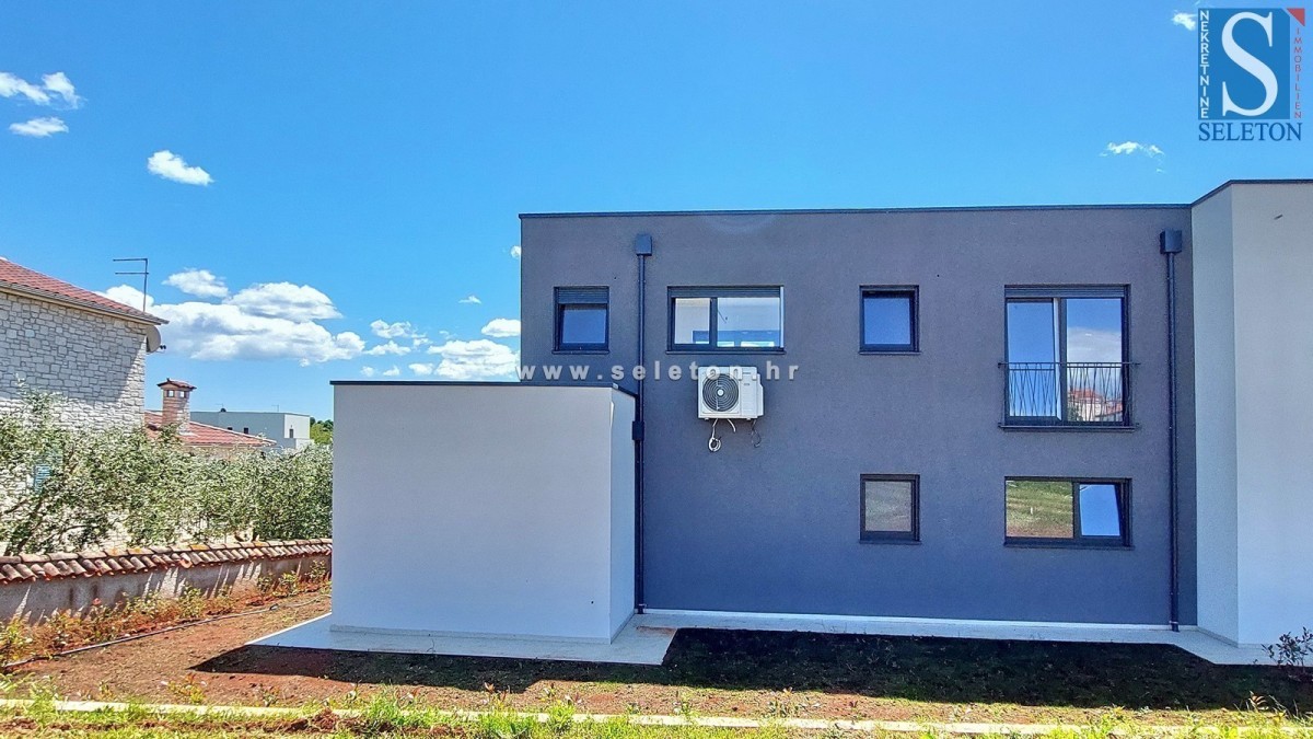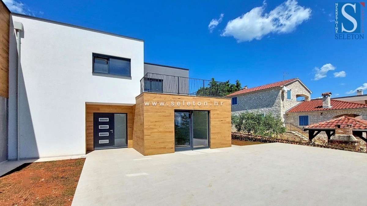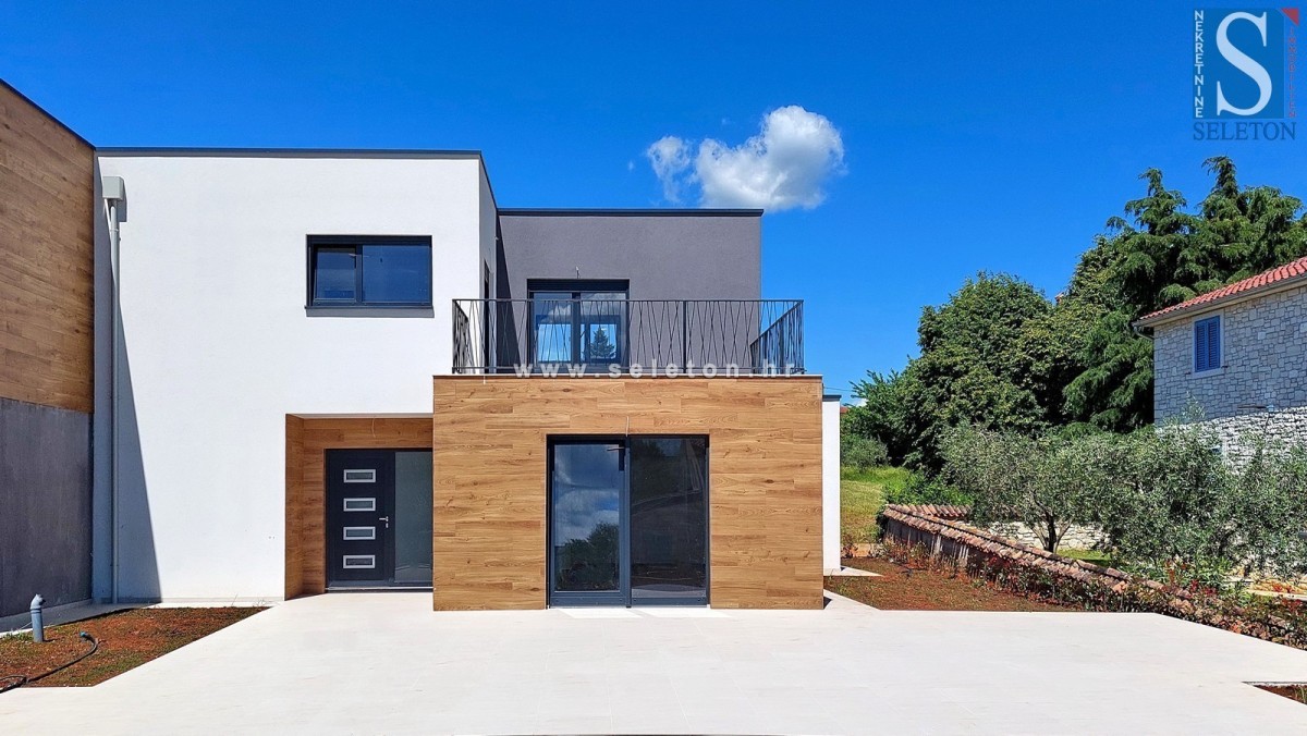 Prodaje se moderna dvojna kuća površine 131 m², sastoji se od dnevnog boravka, kuhinje, blagovaonice, terase, spavaće sobe s kupatilom, spremišta, hodnika, WC-a za goste i ostave u prizemlju te hodnika, 2 spavaće sobe s kupatilima i velike terase na katu kuće. Kuća ima podno grijanje na struju, klima uređaj u svim sobama, zemljište ima površinu od 611 m² na kojem se još nalaze 2 parkirna mjesta i bazen. Kuća je udaljena cca 8 km od Poreča i 9 km od mora.