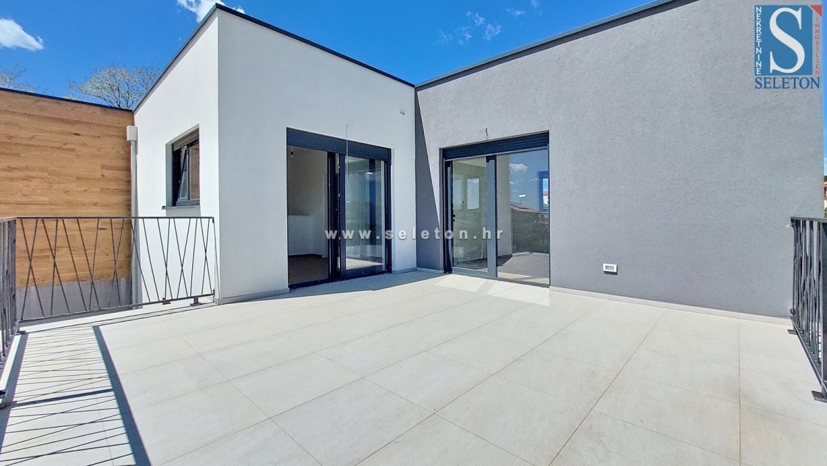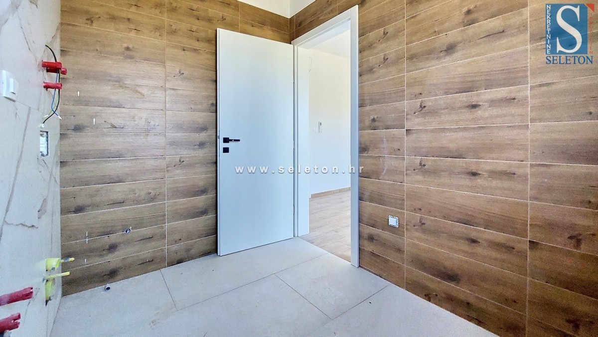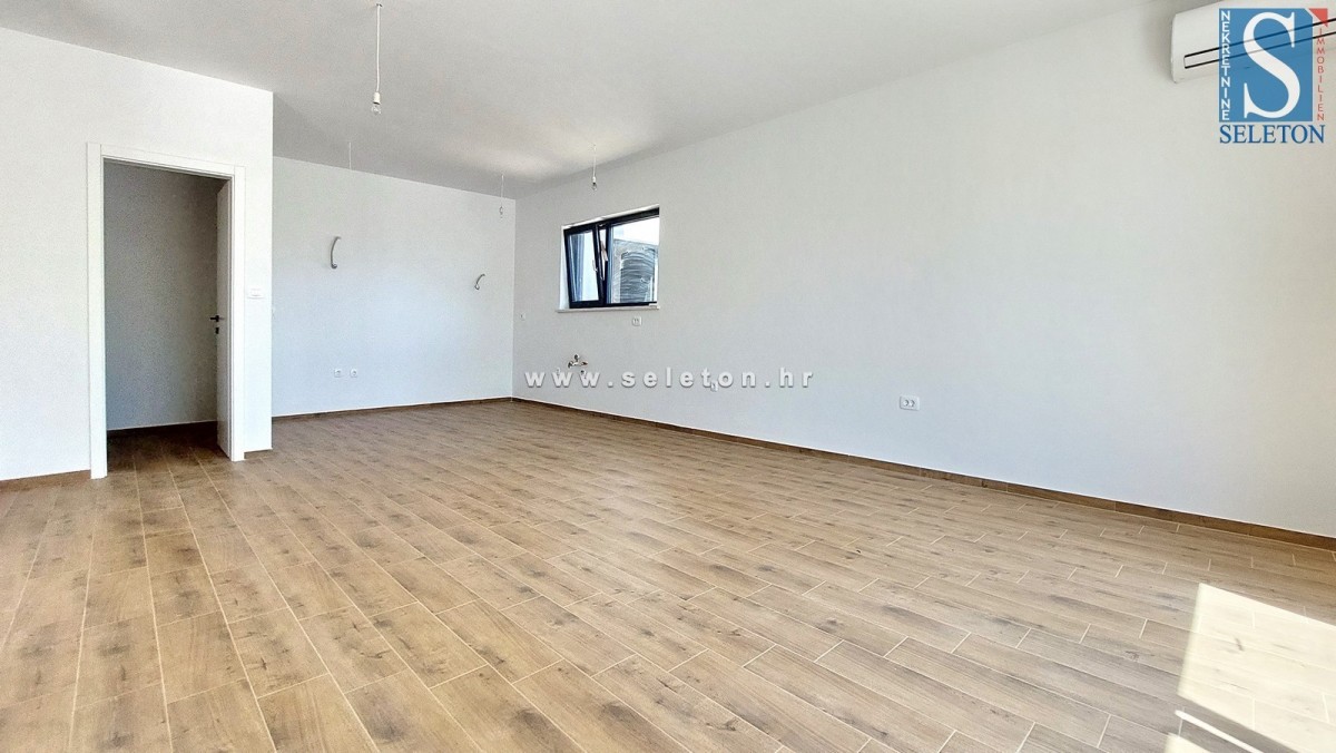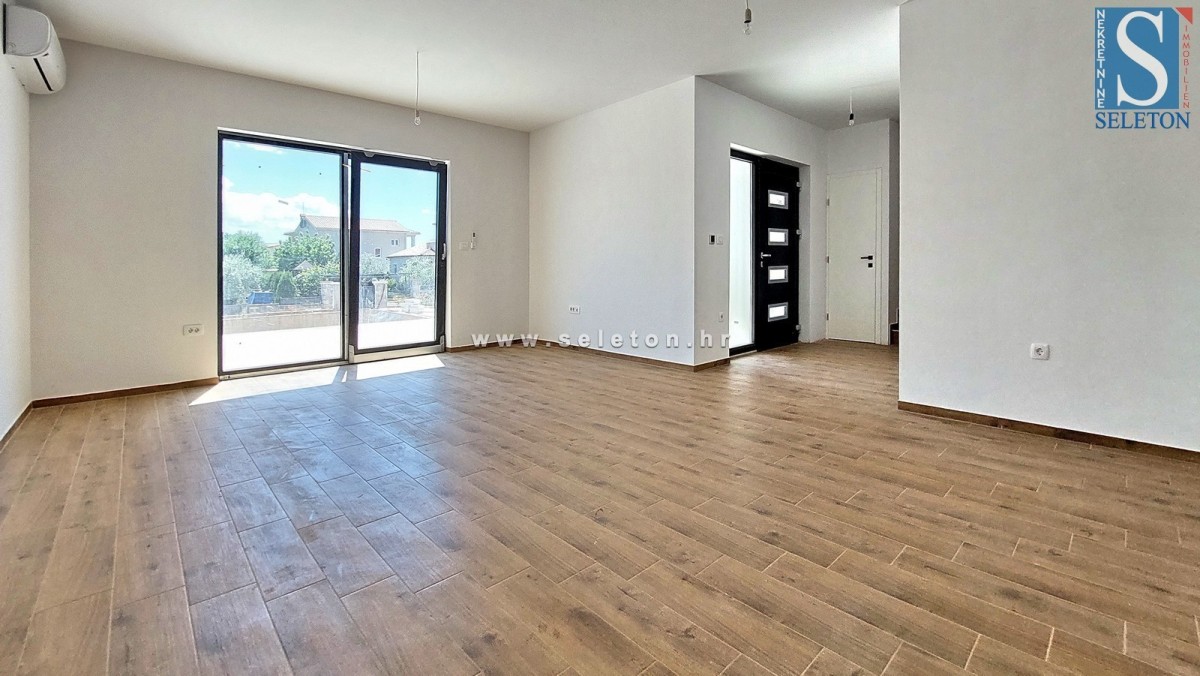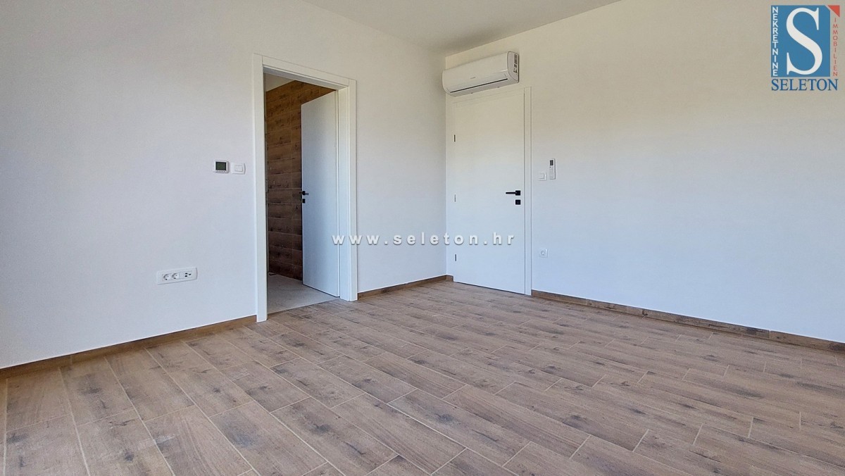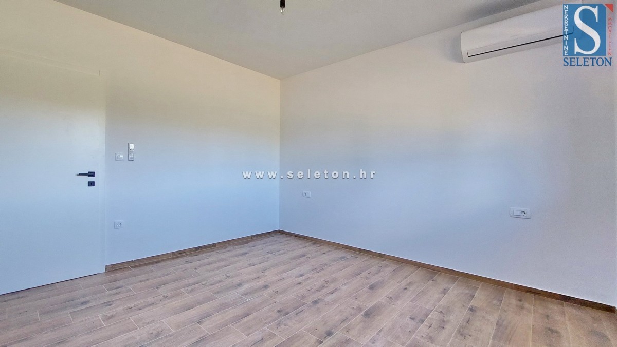 Prodaje se moderna dvojna kuća površine 131 m², sastoji se od dnevnog boravka, kuhinje, blagovaonice, terase, spavaće sobe s kupatilom, spremišta, hodnika, WC-a za goste i ostave u prizemlju te hodnika, 2 spavaće sobe s kupatilima i velike terase na katu kuće. Kuća ima podno grijanje na struju, klima uređaj u svim sobama, zemljište ima površinu od 611 m² na kojem se još nalaze 2 parkirna mjesta i bazen. Kuća je udaljena cca 8 km od Poreča i 9 km od mora.
