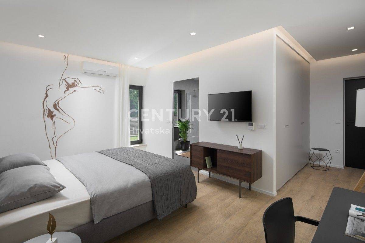 Ova predivna, superluksuzna villa modernog dizajna nalazi se u okolici Pule, u mirnom naselju a predstavlja creme de la creme ponude luksuznih nekretnina na jugu Istre.