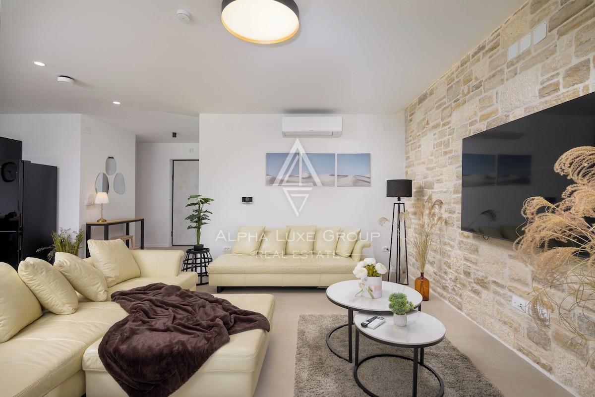 Na katu se nalaze dvije udobne spavaće sobe, svaka s vlastitom kupaonicom, klima uređajem i TV-om, što gostima i obitelji osigurava potpunu privatnost i udobnost. Dodatna prostorija od 42 m² trenutačno je uređena kao teretana i igraonica, s mogućnošću preinake u ured, studio ili dodatnu spavaću sobu. Vila je opremljena električnim podnim grijanjem kojim se upravlja putem Wi Fi sustava, a sve prostorije imaju klimatizaciju, što jamči maksimalnu ugodnost tijekom cijele godine.