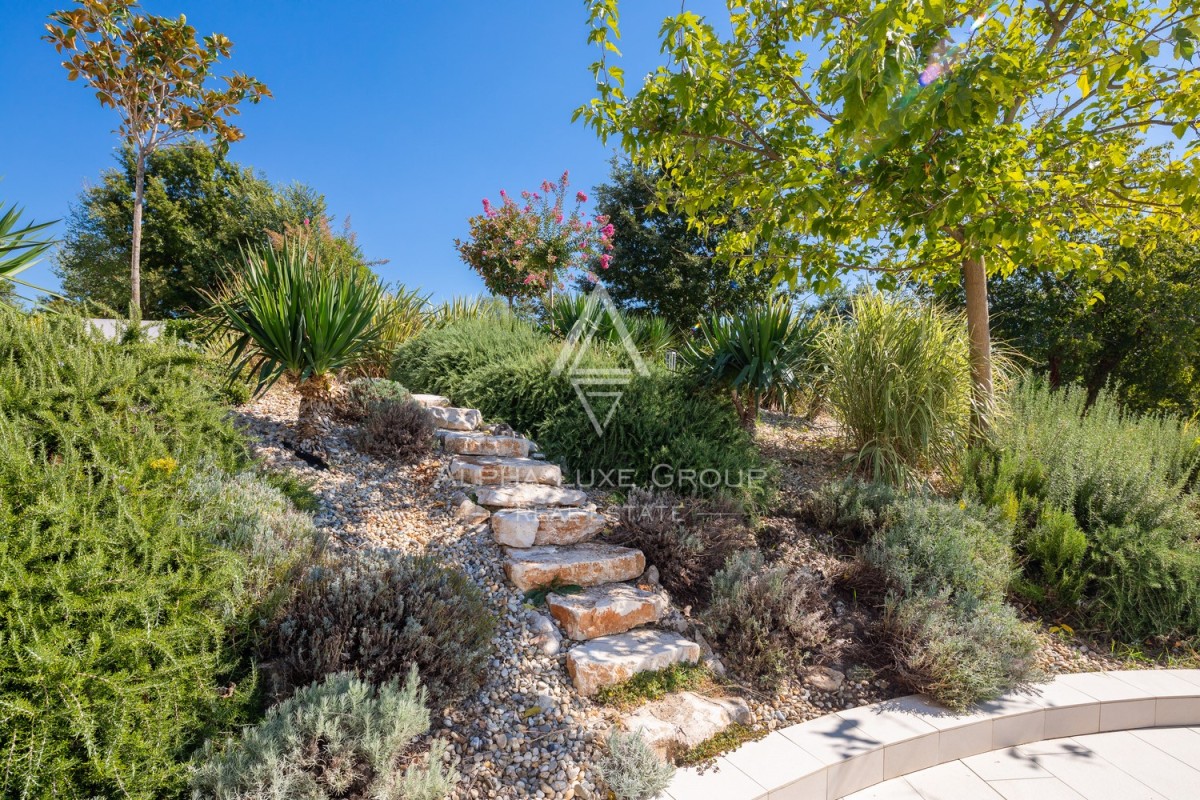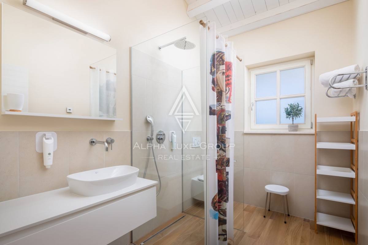 Središnji dio lijepo uređenog vrta zauzima grijani bazen od 48 m², uz koji se nalazi i grijani vanjski tuš. Prizemlje također uključuje wellness zonu sa saunom te jednu spavaću sobu s privatnom kupaonicom, garderobom i izravnim pristupom terasi.
