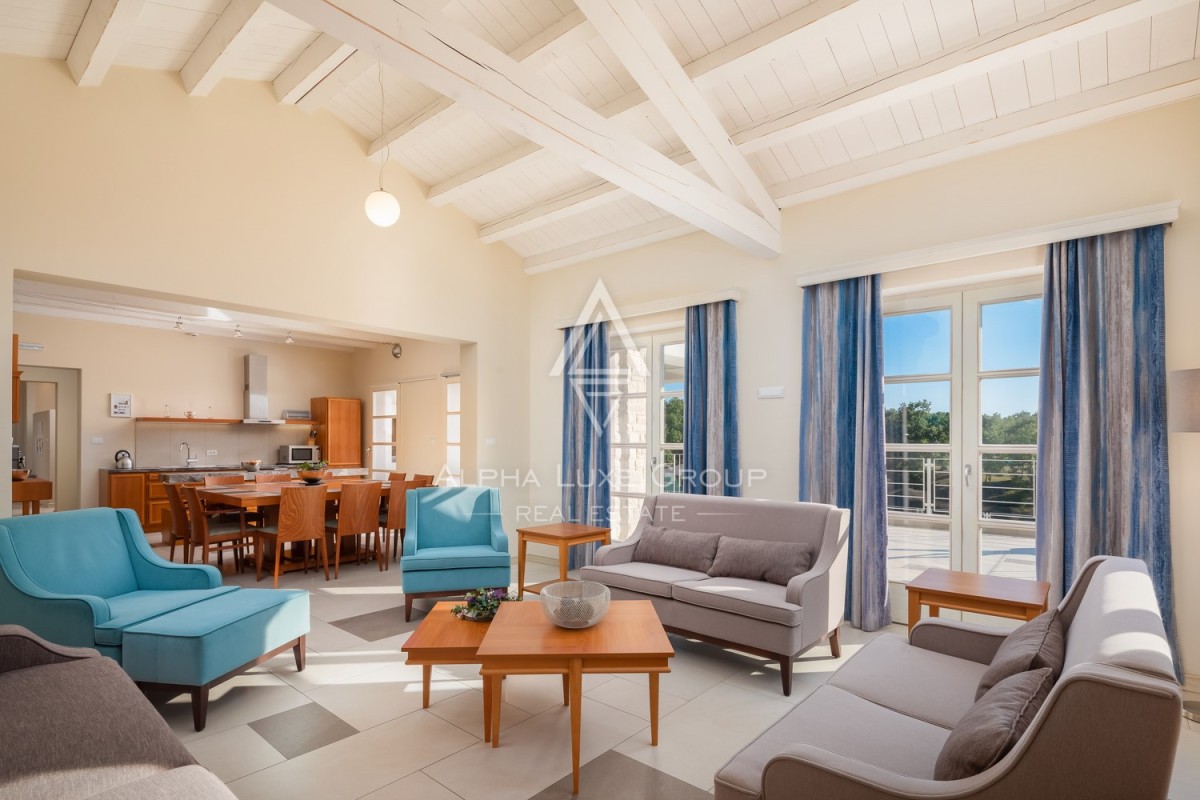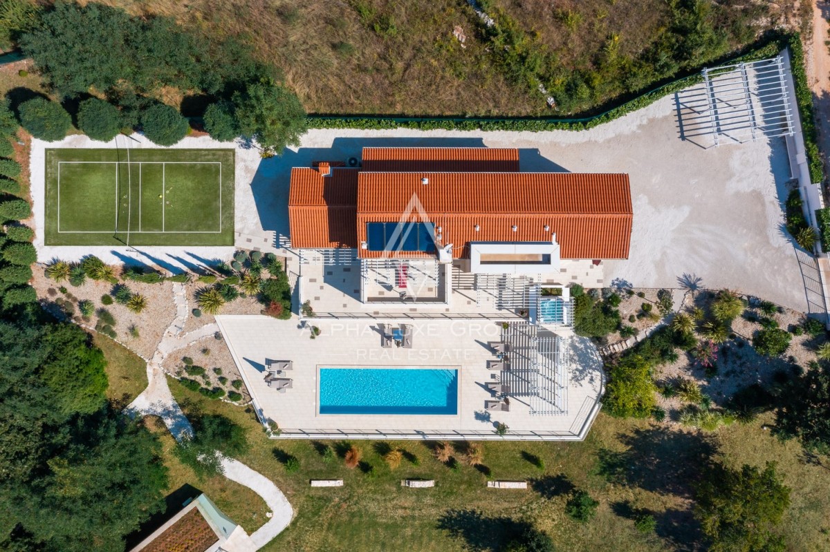 Za cjelogodišnji komfor vila je opremljena podnim grijanjem u cijelom prostoru i klima uređajima u svakoj prostoriji. Dodatne pogodnosti uključuju natkriveni parking, hidromasažnu kadu, teren za badminton i odbojku te pažljivo održavan mediteranski vrt. Sustav sigurnosti s kamerama i alarmom pruža dodatnu sigurnost i mir.