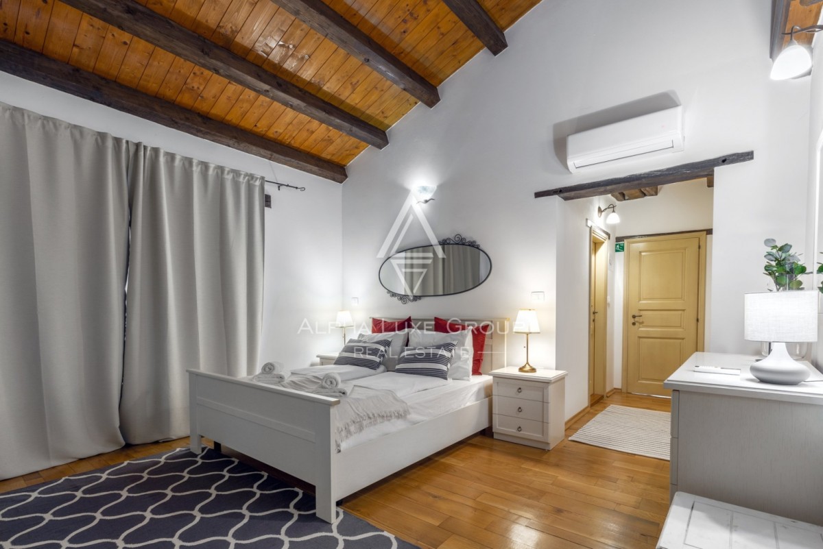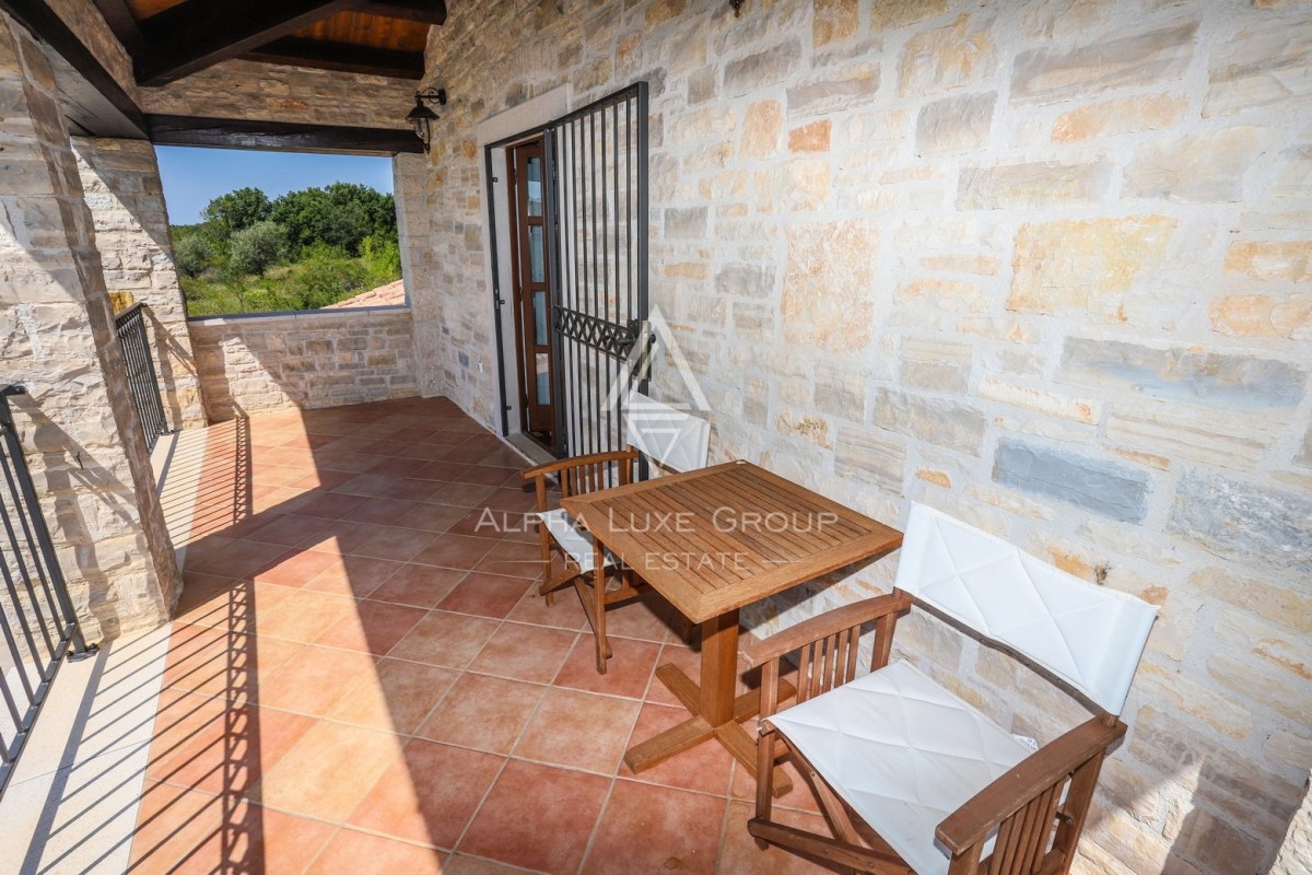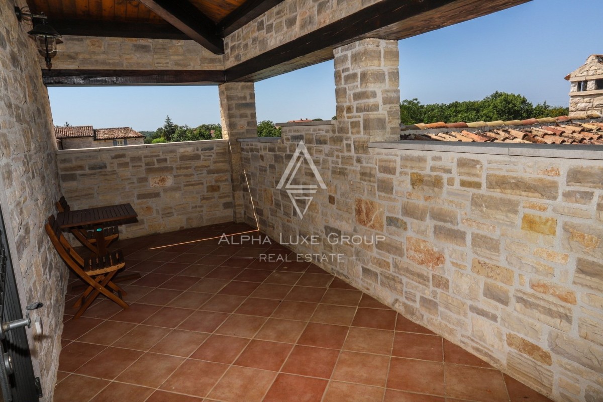 Smještena u idiličnom selu Rajka u Istri, ova izuzetna kamena vila nalazi se na prostranom zemljištu od 1.772 m², nudeći savršen spoj tradicionalnog šarma i modernih sadržaja na dvije etaže.