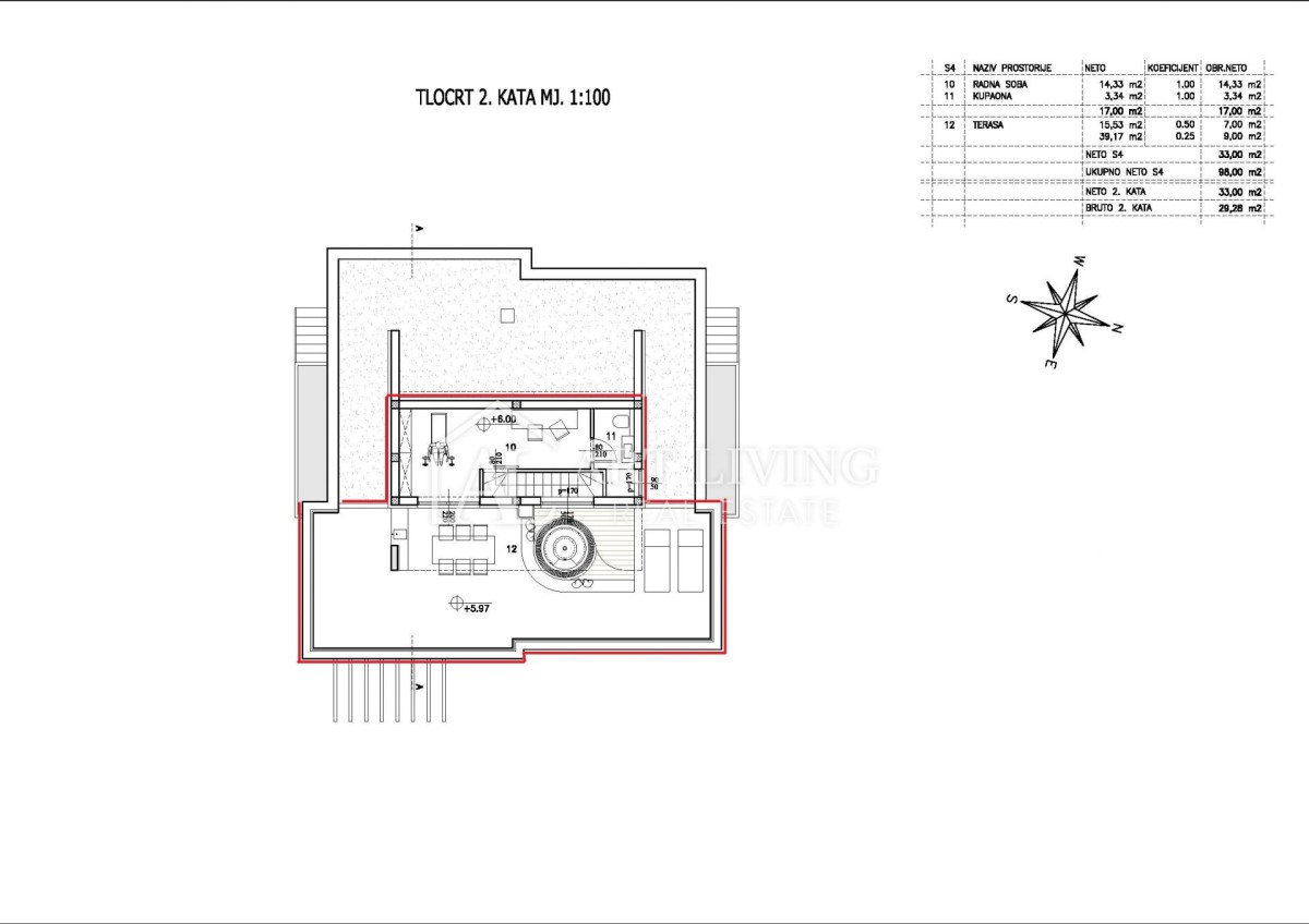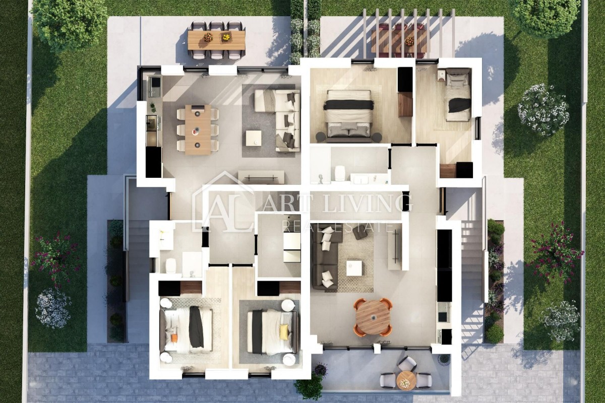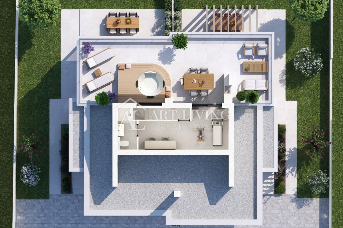 Nekretninu karakterizira moderan dizajn sa velikim staklenim stijenama čime se ostvaruje fenomenalna osvjetljenost tijekom cijelog dana. stan se gradi materijalima vrhunske kvalitete, odličnom izolacijom, PVC i ALU stolarijom s eletro roletama, komarnicima i troslojnim staklom. Sustav rashlađivanja osiguran je klima uređajima dok će grijanje biti podno na toplinsku pumpu.