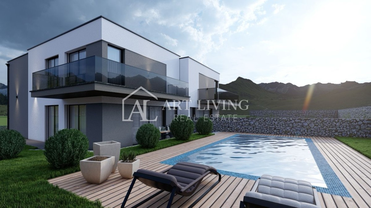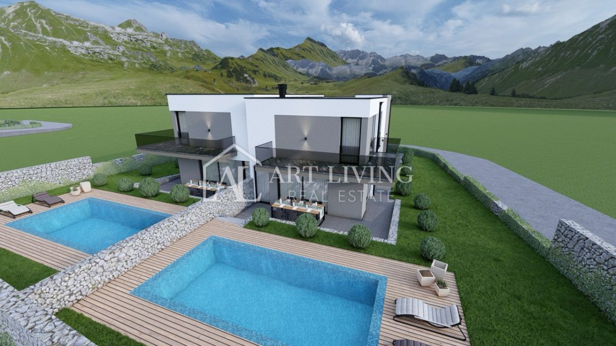 Na okućnici površine od 300 m2 biti će smješten veliki grijani bazen od 20 m2 sa uređenim sunčalištem te dva parkirna mjesta.