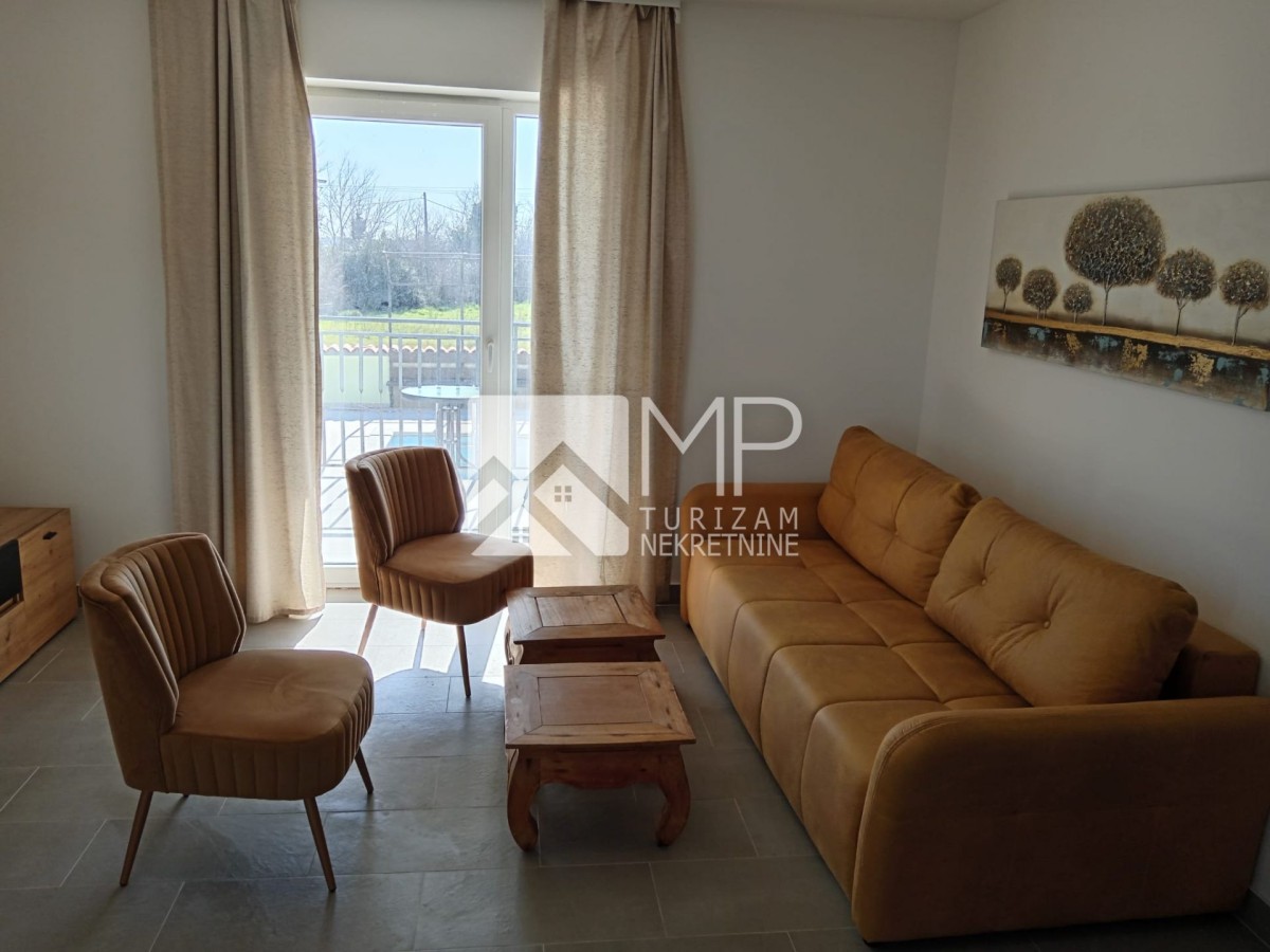 Prostrana okućnica gdje dominira veliki bazen sa sunčalištem i mirno mjesto pruža zagarantiran odmor i privatnost.
