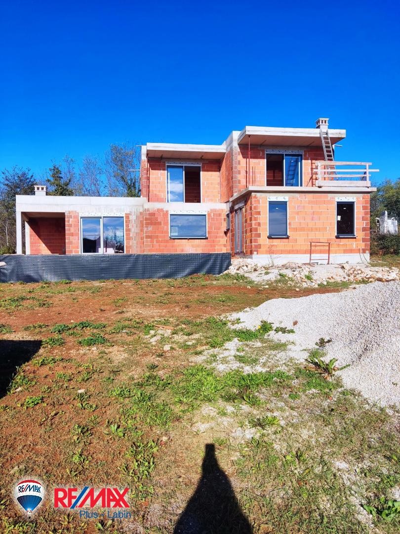 Moderna kuća u procesu izgradnje u mirnom manjem mjestu u blizini Labina, čiji se dovršetak izgradnje planira za početak 2024.godine.