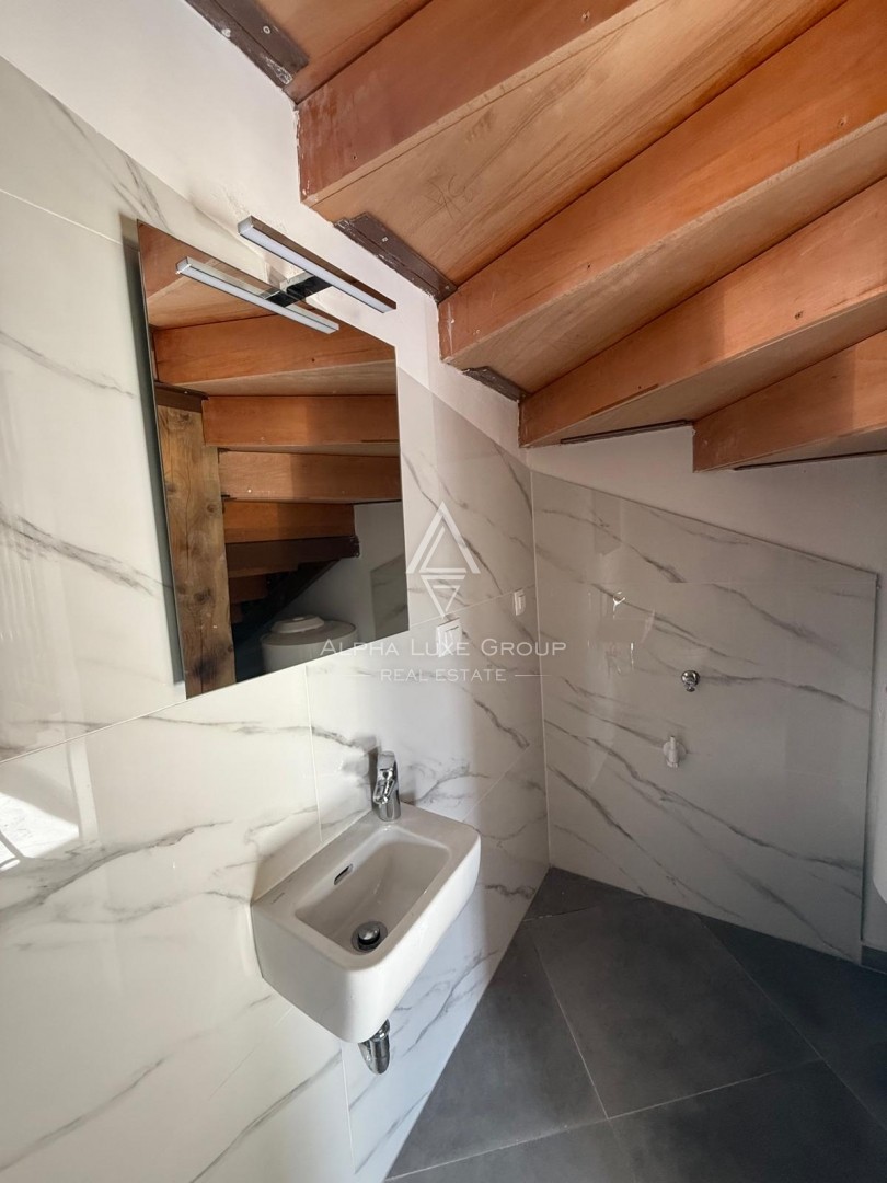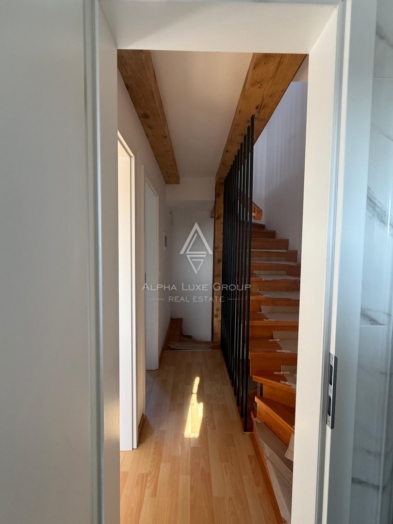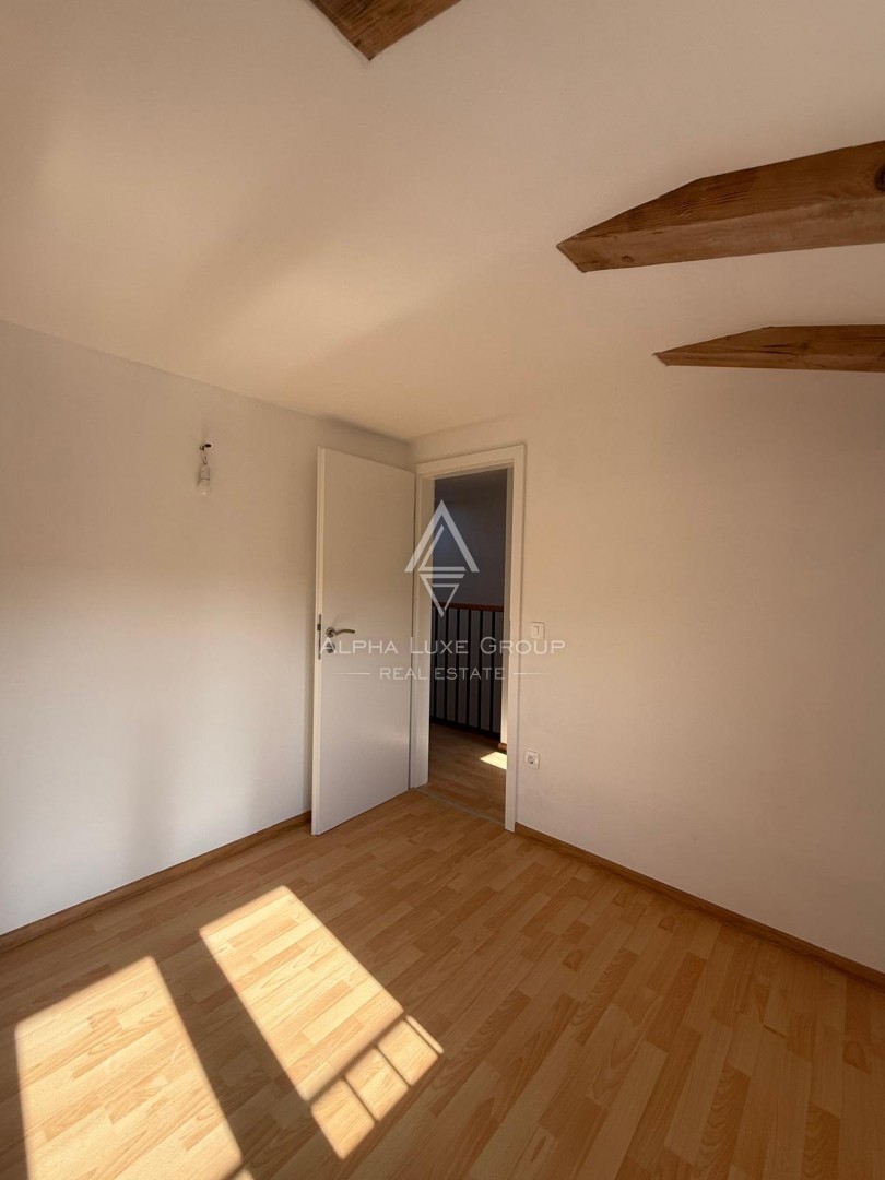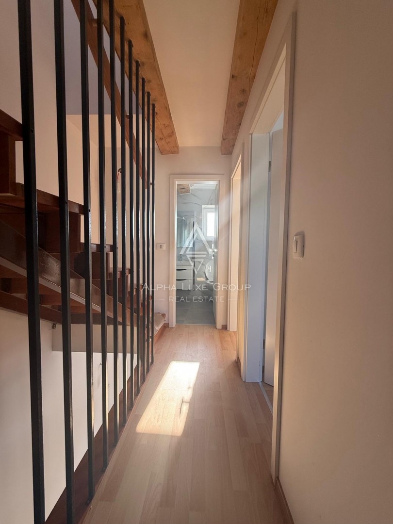 Gornje etaže povezane su unutarnjim stubištem: prvi kat nudi dvije spavaće sobe i kupaonicu, dok drugi kat sadrži još dvije sobe i dodatnu kupaonicu.