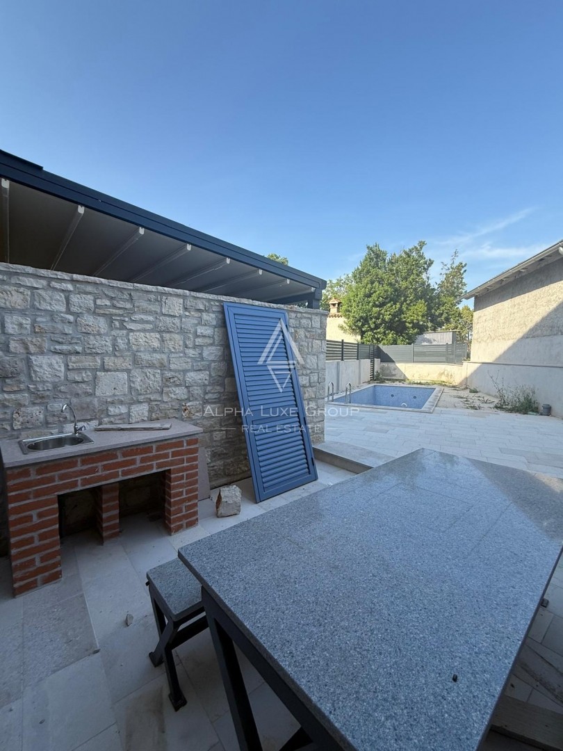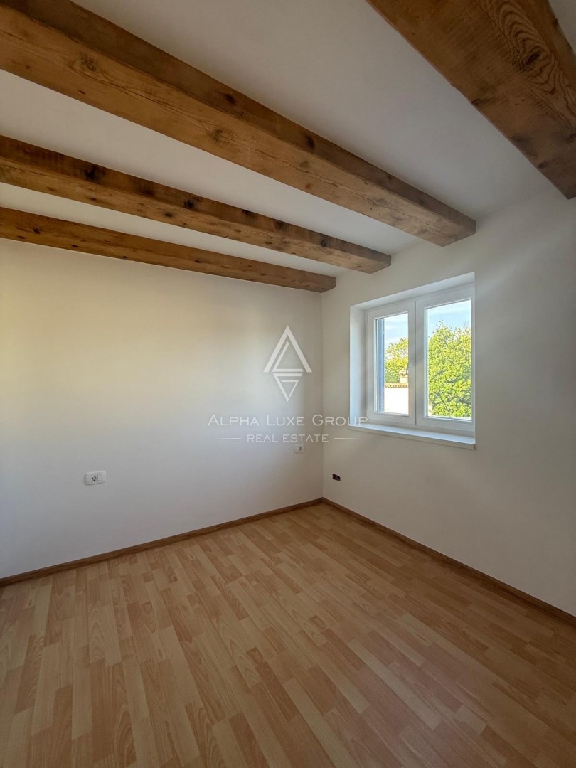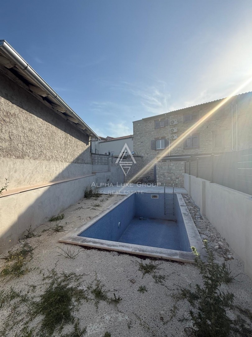 Smještena u mirnom selu Juršići u središnjoj Istri, ova potpuno obnovljena kamena kuća uspješno spaja autentični istarski šarm s funkcionalnim modernim dizajnom. Raspoređena na tri etaže i s ukupno 90 m² neto stambenog prostora, kuća uključuje četiri spavaće sobe, dvije kompletne kupaonice i dodatni gostinjski toalet. U prizemlju se nalazi ugodan dnevni boravak, kuhinja s blagovaonicom i izlaz na osunčanu terasu s privatnim bazenom – savršeno za opuštanje i druženja na otvorenom.