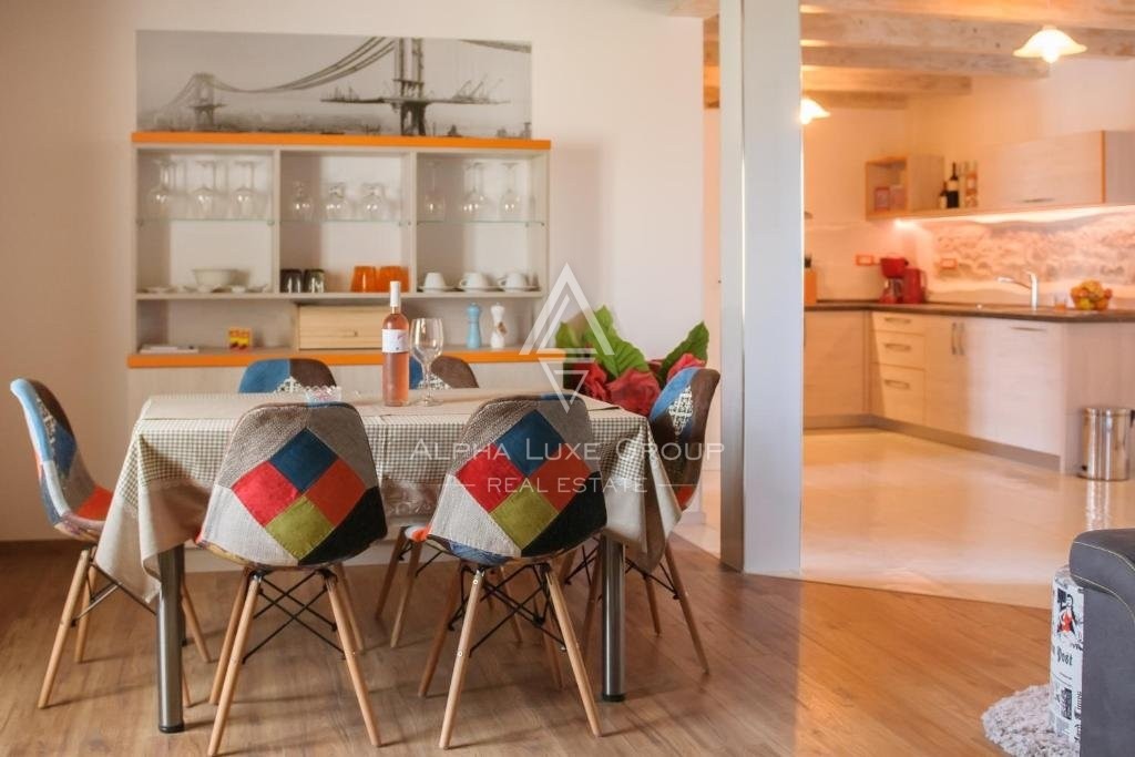 Jedan stan je u prizemlju, dva stana su na prvom katu, a drugi je na drugom katu. U kući se nalazi šest spavaćih soba i četiri kupaonice. 2015. godine potpuno je renoviran i opremljen najsuvremenijim sadržajima. Klima uređaj i kamin na drva griju i hlade dom.
