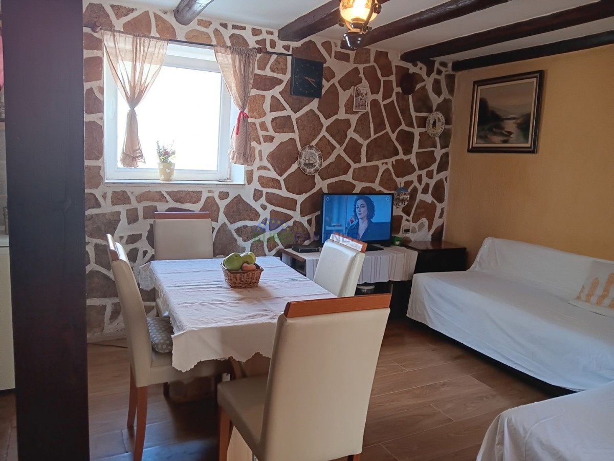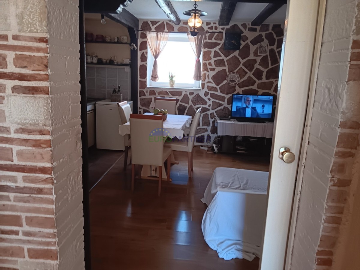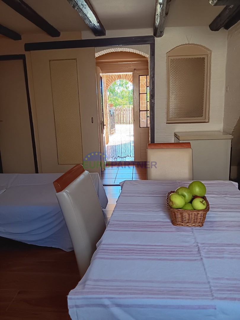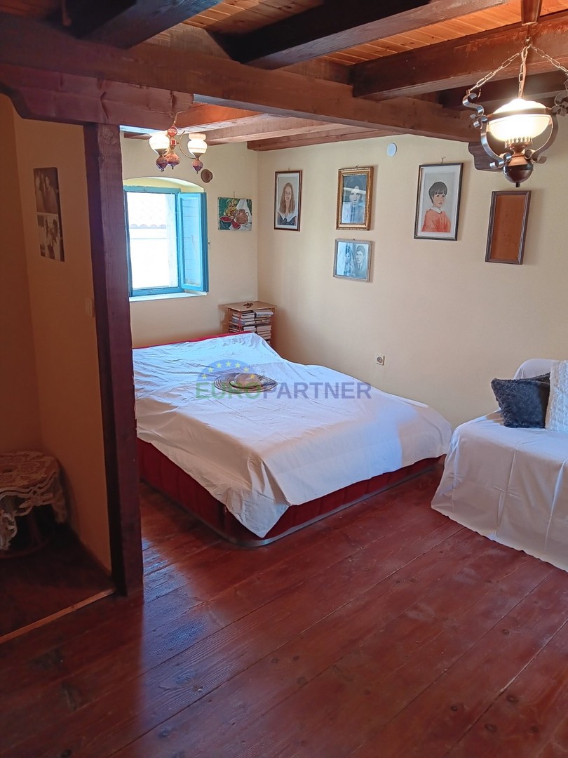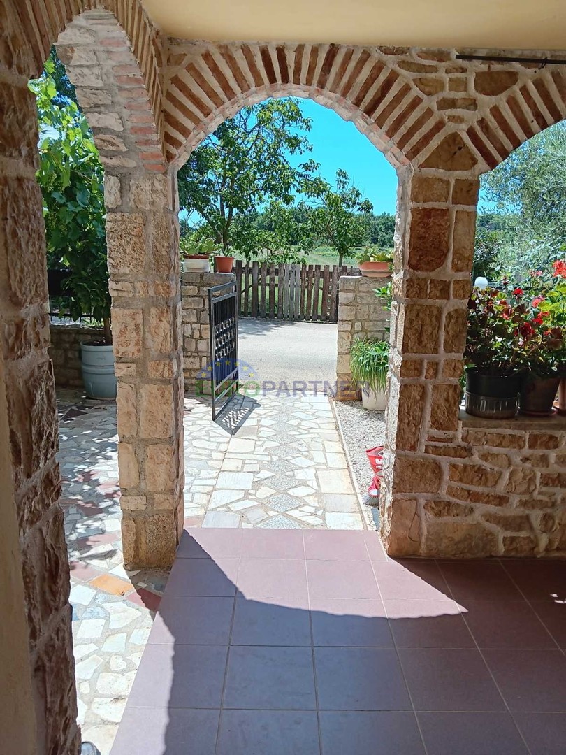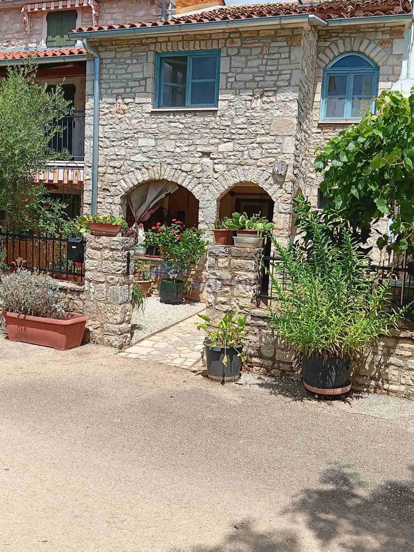 Ova tipična istarska kuća traži djelomično unutarnje renoviranje kako bi ponovo zasjala u starom sjaju u kojem se ističe debljina starih kamenih zidova od 60cm, drveni parketi na podovima te drvene grede na stropovima.