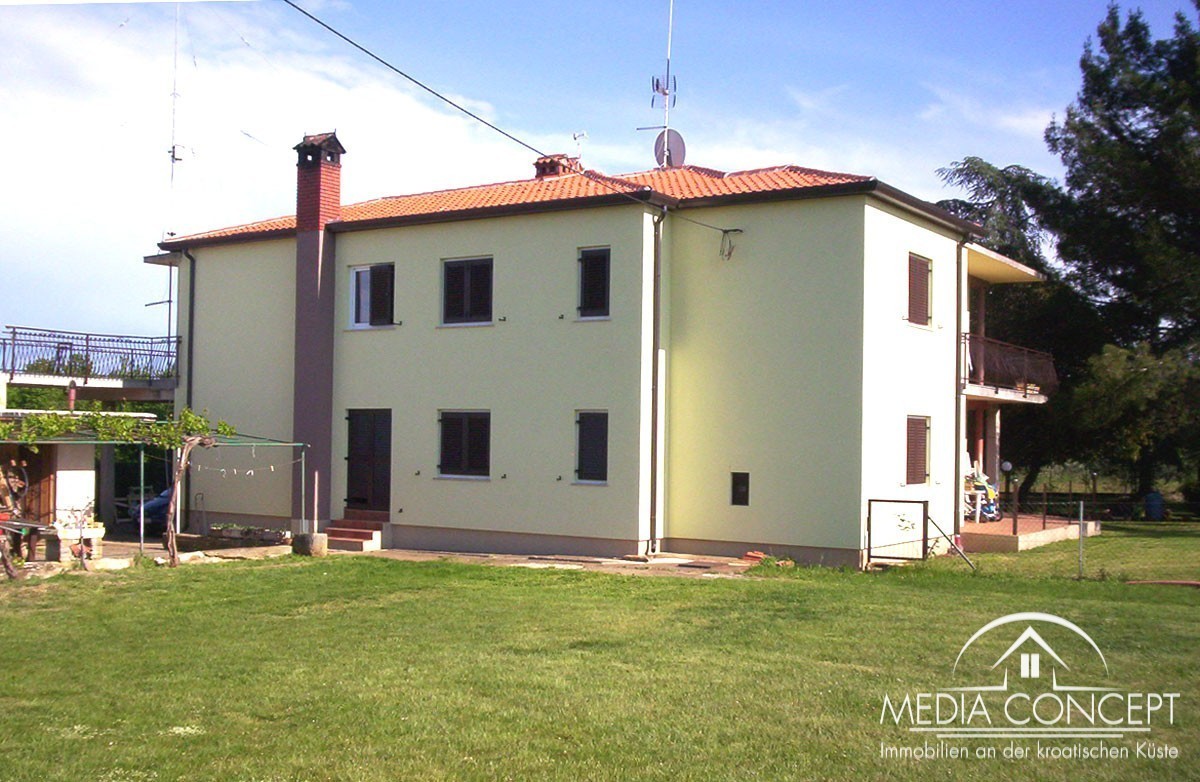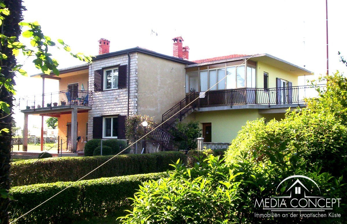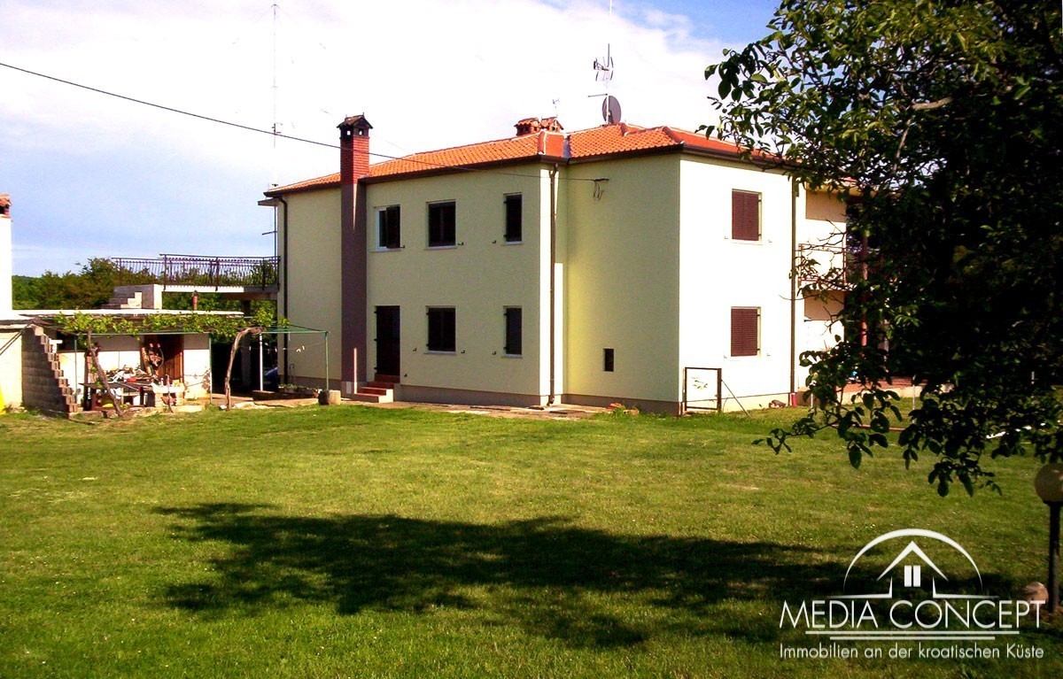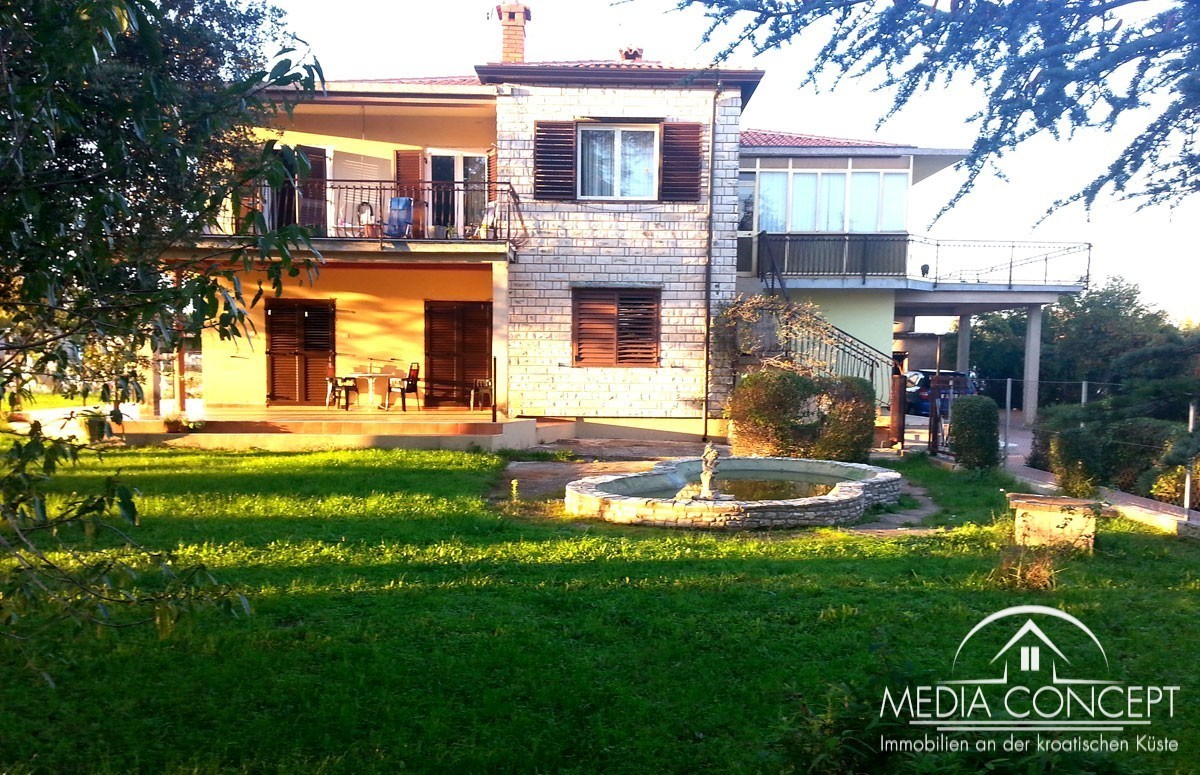 Na ovom posjedu od 1600 nalazi se velika obiteljska kuća. Idealno za posao ili miran život. Na prvom katu je stan veličine 133,5 m2 (kuhinja, blagovaonica, hodnik, dnevni boravak, 3 spavaće sobe, 2 kupaonice i dvije velike terase). U prizemlju se nalaze dva stana od 45 i 60 m2, te ured od 20 m2. Tu su i dvije garaže, svaka sa dva parkirna mjesta. Sa terasa se pruža lijepi pogled na okolinu i slikovito mjesto. Kuća je kompletno namještena i djelomično obnovljena. Krov u godini 2013, a u toku je zamjena stolarije.