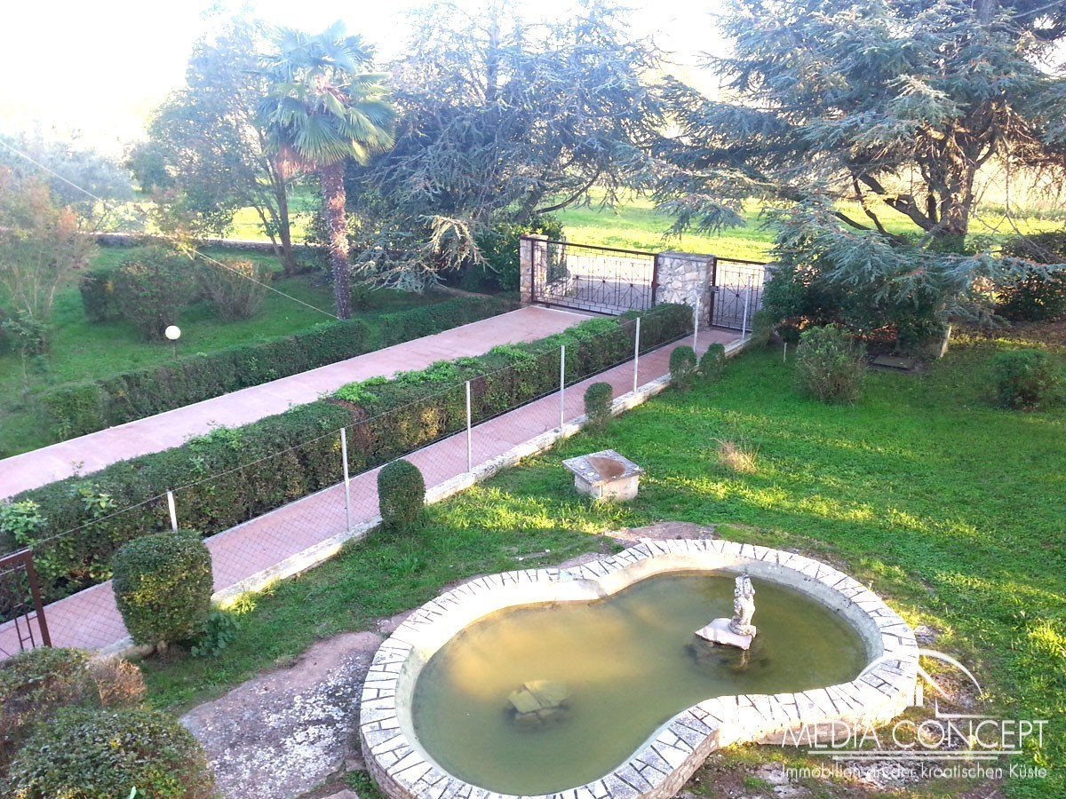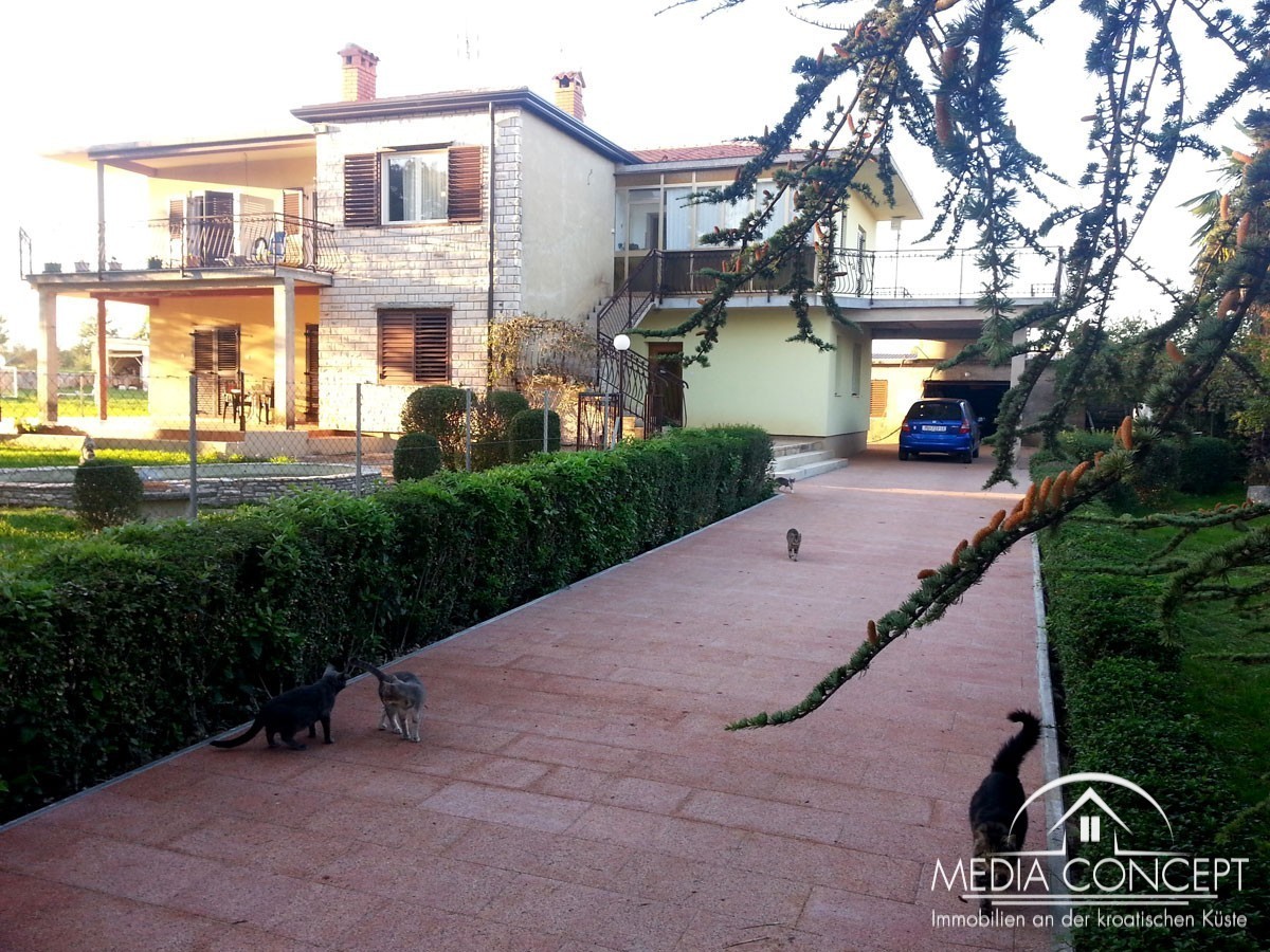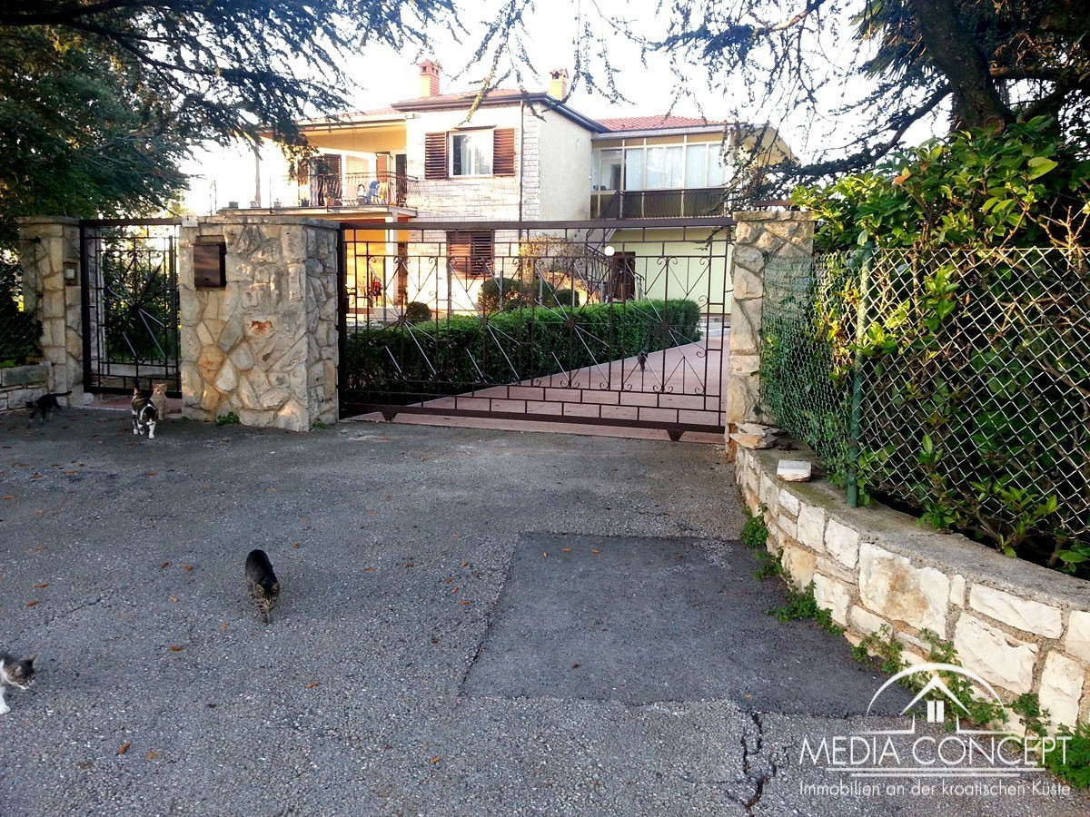 Na ovom posjedu od 1600 nalazi se velika obiteljska kuća. Idealno za posao ili miran život. Na prvom katu je stan veličine 133,5 m2 (kuhinja, blagovaonica, hodnik, dnevni boravak, 3 spavaće sobe, 2 kupaonice i dvije velike terase). U prizemlju se nalaze dva stana od 45 i 60 m2, te ured od 20 m2. Tu su i dvije garaže, svaka sa dva parkirna mjesta. Sa terasa se pruža lijepi pogled na okolinu i slikovito mjesto. Kuća je kompletno namještena i djelomično obnovljena. Krov u godini 2013, a u toku je zamjena stolarije.