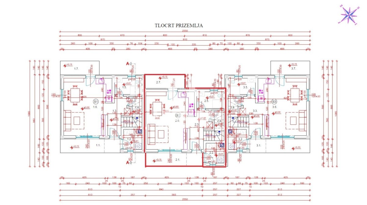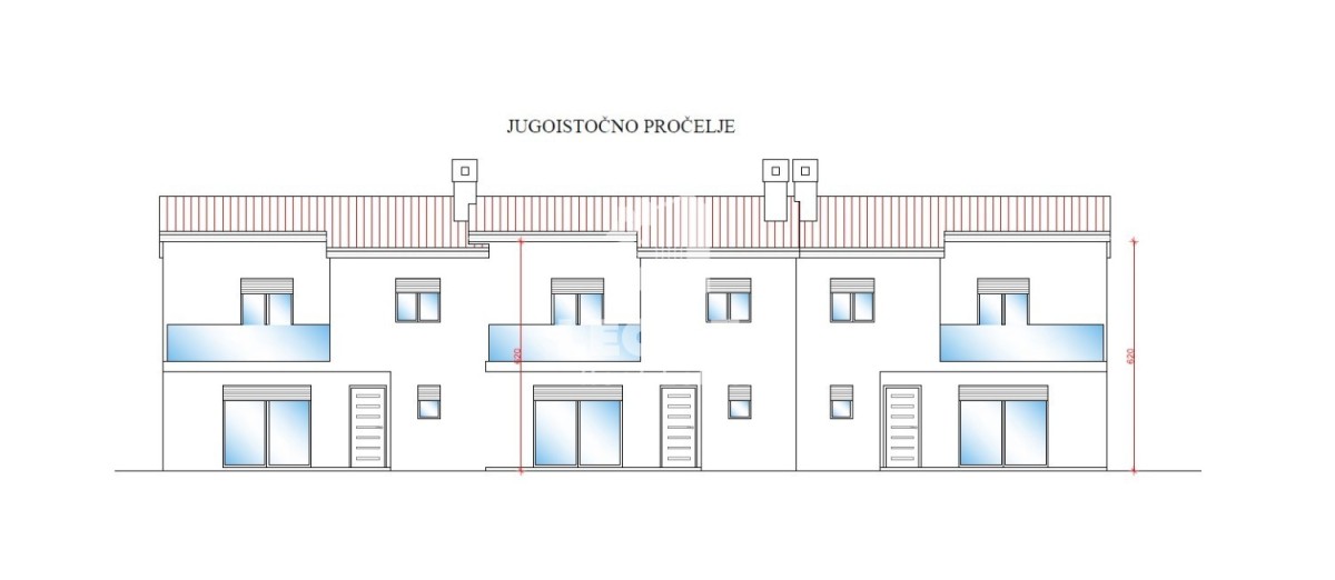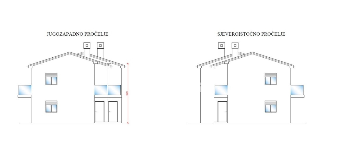 Što se tiče grijanje, biti će postavljena predispozicija za podno grijanje na toplinsku pumpu dok je hlađenje na klima jedinice. Površina bazena je 26 m2. Između kuća će biti postavljena ograda.