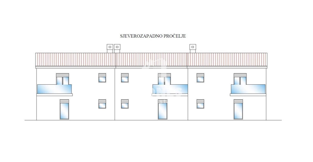 Prodaje se kuća u nizu s bazenom u blizini Buja. Neto površina kuće je 102 m2 dok je površina okućnice oko 200 m2. U prizemlju se nalaze kupatilo, ostava, tehnička soba, kuhinja s blagovaonom i dnevni boravak koji ima izlaz na terasu. Na katu su smještene 3 spavaće sobe, kupatilo i wc.
