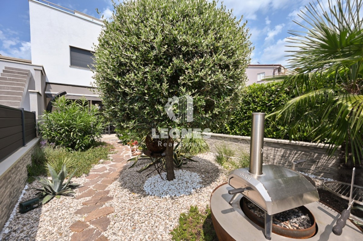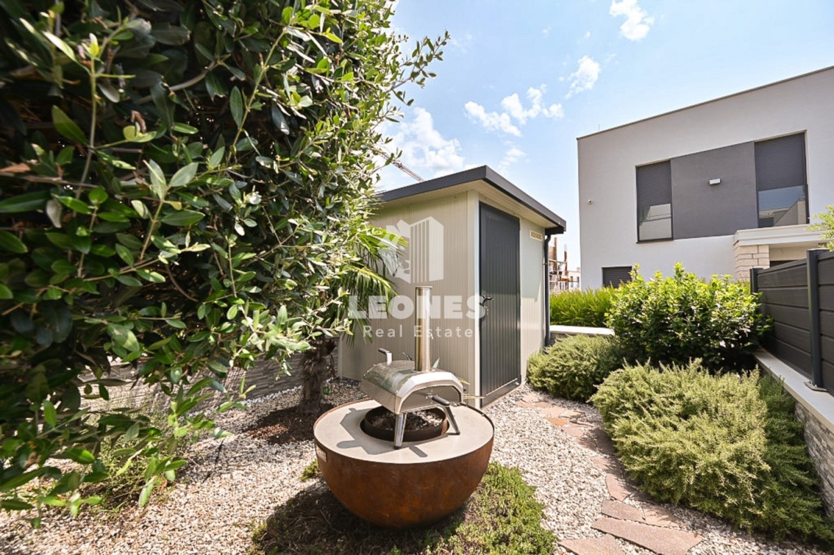 Kuća se prodaje kompletno opremljena, ima svoju vrtnu kućicu, vanjsko spremište za bicikle i parkirno mjesto.