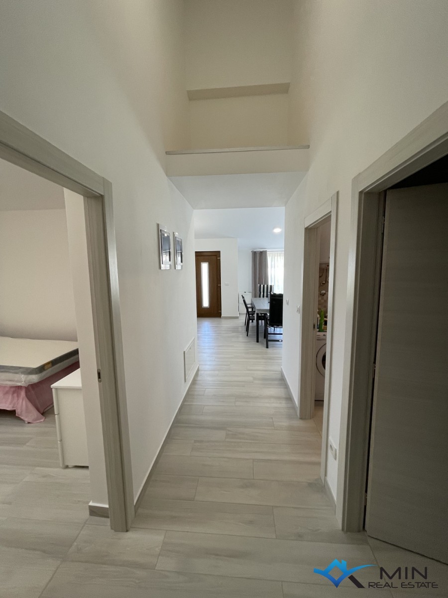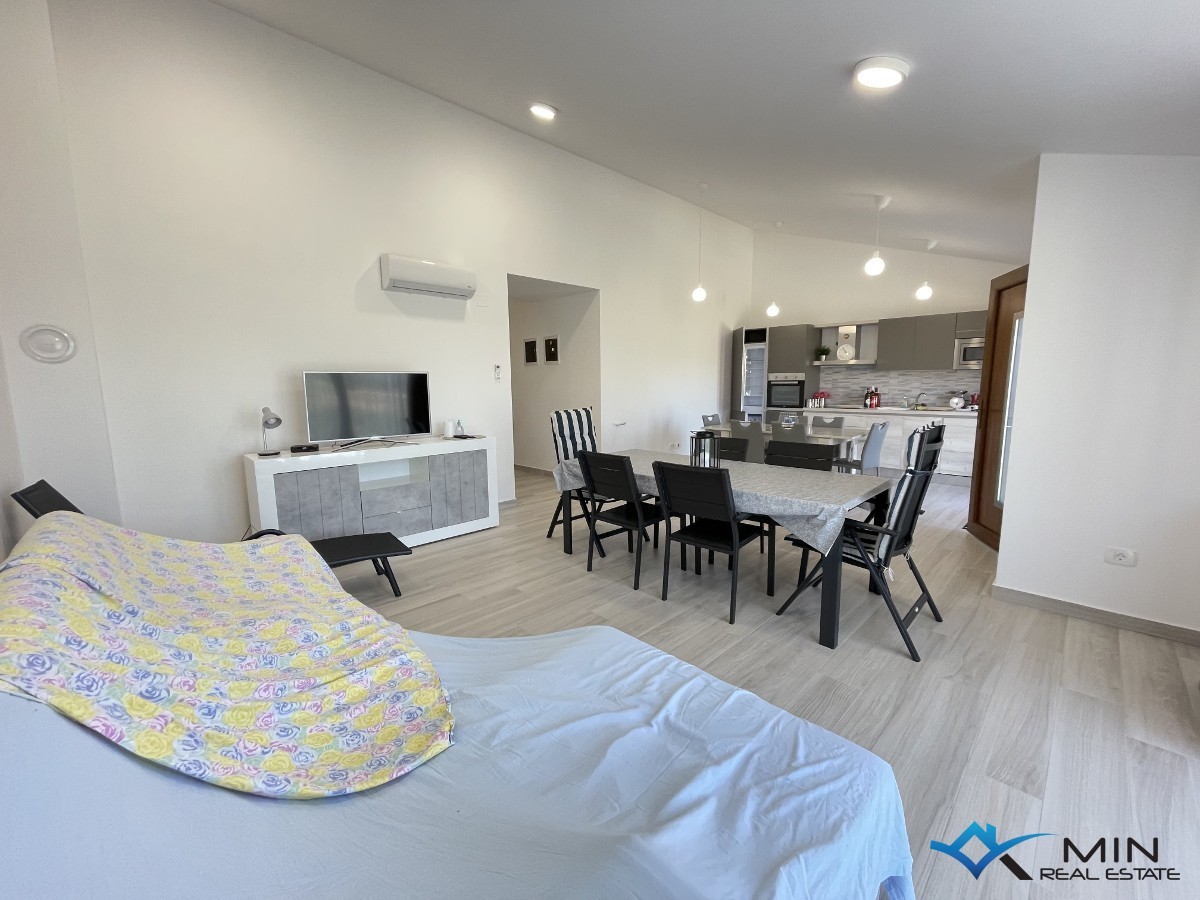 Prodaje se lijepa kuća u nizu na mirnoj lokaciji u Novigradu. Kuća je udaljena 1500 m od centra grada te 1200 m od mora i lijepo uređene plaže. Kuća ima 110 m2 te se sastoji od ulaznog hodnika, spremišta, 2 kupatila, 3 spavaće sobe, kuhinje s blagovaonicom te dnevnog boravka s izlazom na terasu. Svaka prostorija u kući opremljena je klima uređajem, a također postoji mogućnost ugradnje kamina. Kući pripada 1 parkirno mjesto te vrt od 200 m2 na kojem je moguća izgradnja bazena. Kuću je moguće koristiti u stambene ili turističke svrhe.