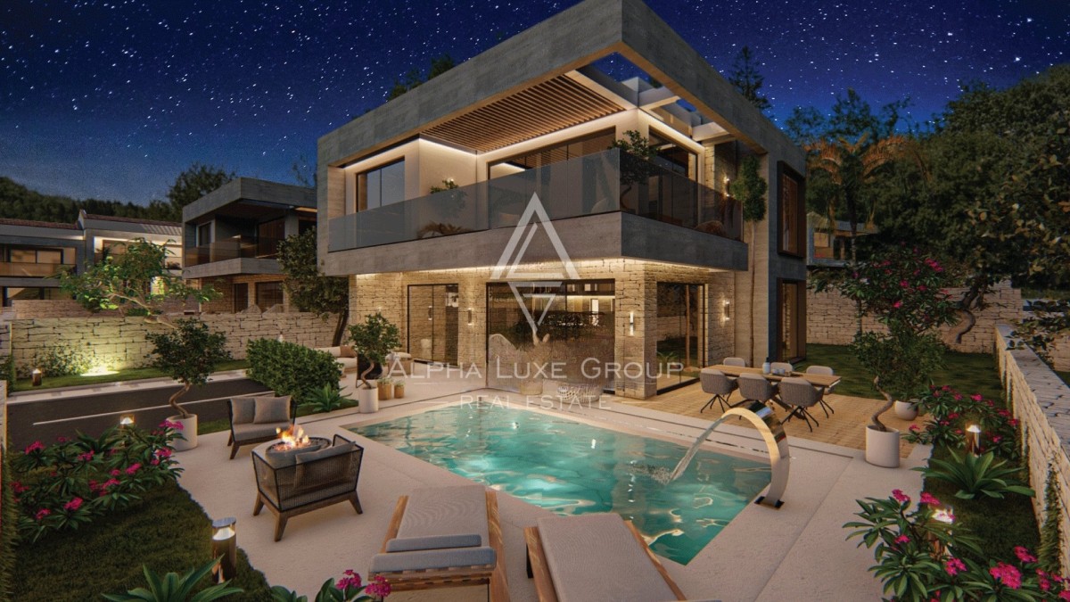 Elegantne unutarnje stepenice vode na prvi kat, gdje se nalaze tri prostrane spavaće sobe, svaka s vlastitom kupaonicom, praonica i privatna terasa, pružajući mirno utočište za opuštanje. Vila je građena od vrhunskih materijala i opremljena podnim grijanjem putem toplinske pumpe i naprednim klimatizacijskim sustavom, osiguravajući cjelogodišnji komfor. Gradnja počinje u jesen 2023., a završetak se očekuje do ljeta 2025.. Nekretnina se prodaje po sistemu "ključ u ruke" (bez namještaja), omogućujući trenutno useljenje nakon završetka gradnje.