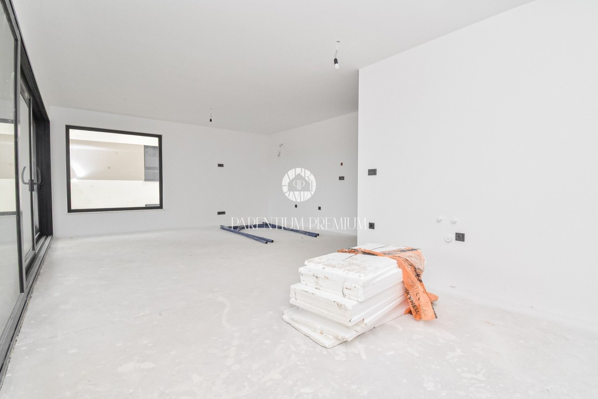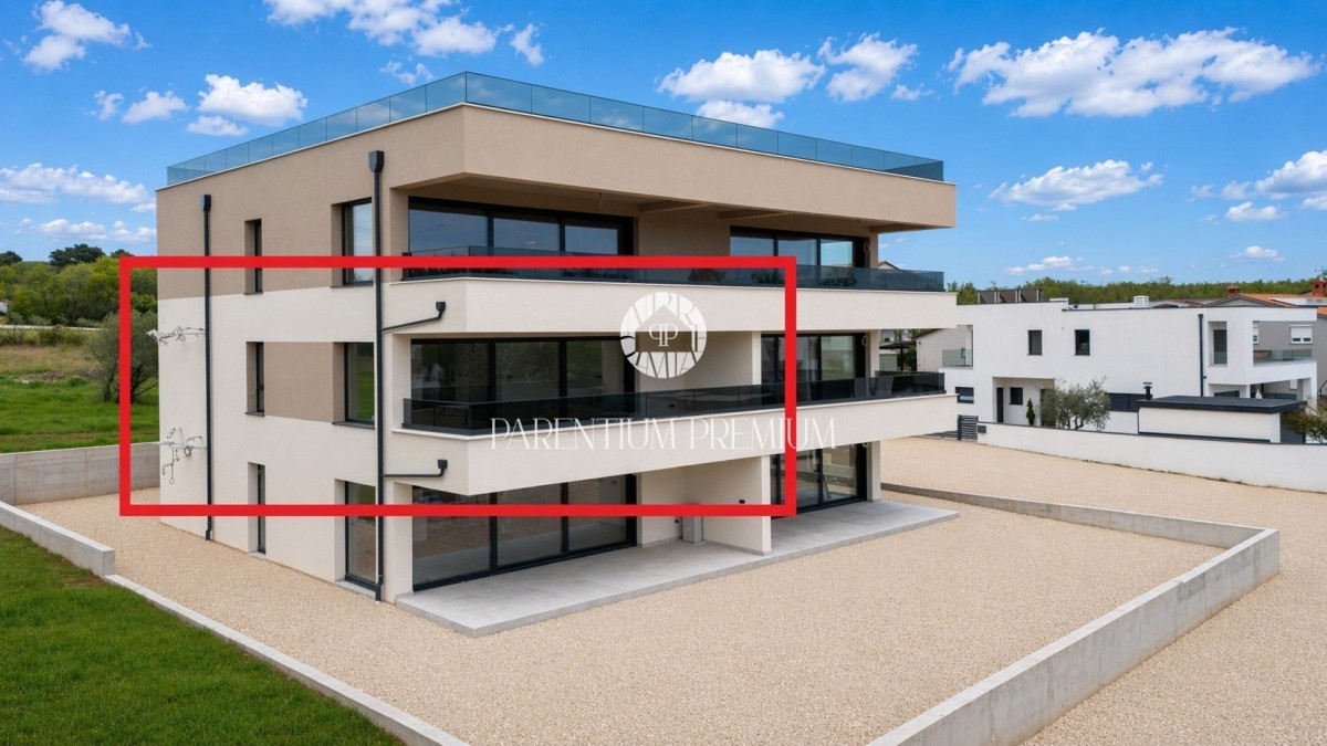 Na prodaju je luksuzan i moderno projektiran stan smješten na prvom katu nove stambene zgrade s ukupno pet stanova, udaljene svega 3 km od centra Poreča i mora.