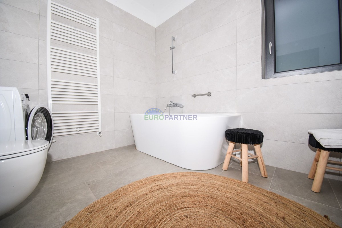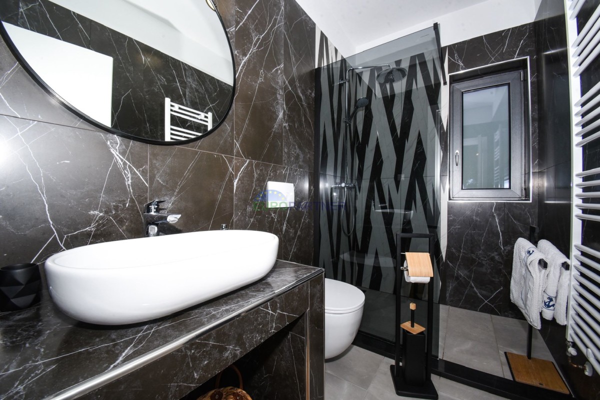 Oprema i tehničke karakteristike: podno grijanje putem toplinske pumpe,klima uređaji u svim prostorijama,kvalitetna gradnja i moderan dizajn interijera.
