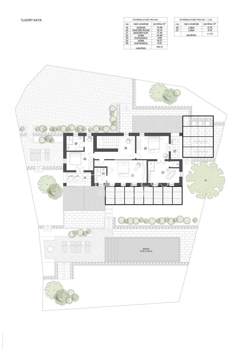 Na katu ville smješteno je predsoblje, te tri spavaće sobe sa vlastitim kupaonicama i lođe sa prekrasnim pogledima.
