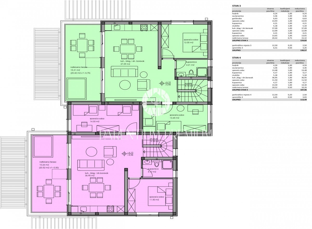 Dvoetažni stan se nalazi na prvom i drugom katu.