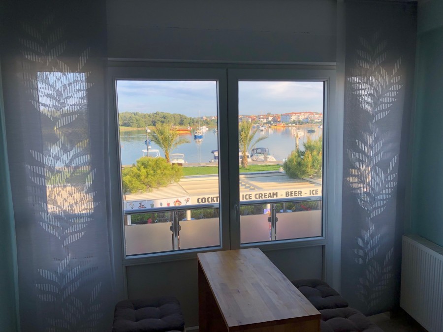 Stan je pozicioniran prvi red do mora i idealan je turističko iznajmljivanje zbog blizine plaže i svih drugih sadržaja, kao i za stanovanje zbog svoje opremljenosti (centralno grijanje , bide , perilice za rublje i posuđe)