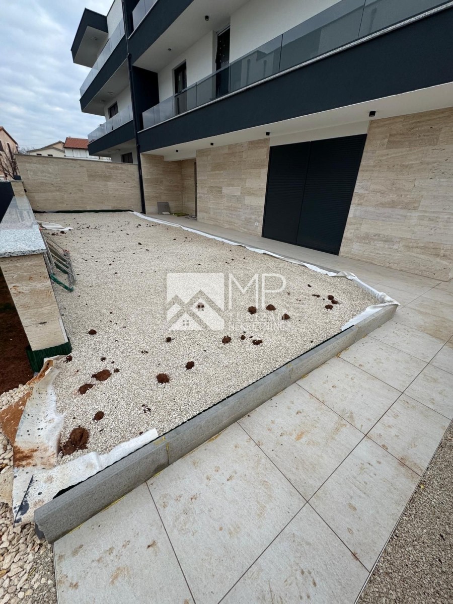 Uz stan pripadaju 4 parkirna mjesta ispred zgrade, spremište i bazen sa grijanjem. Ukupna površina stana s uračunatim koeficijentima parkirnih mjesta, vrta i spremišta iznosi cca 186 m².