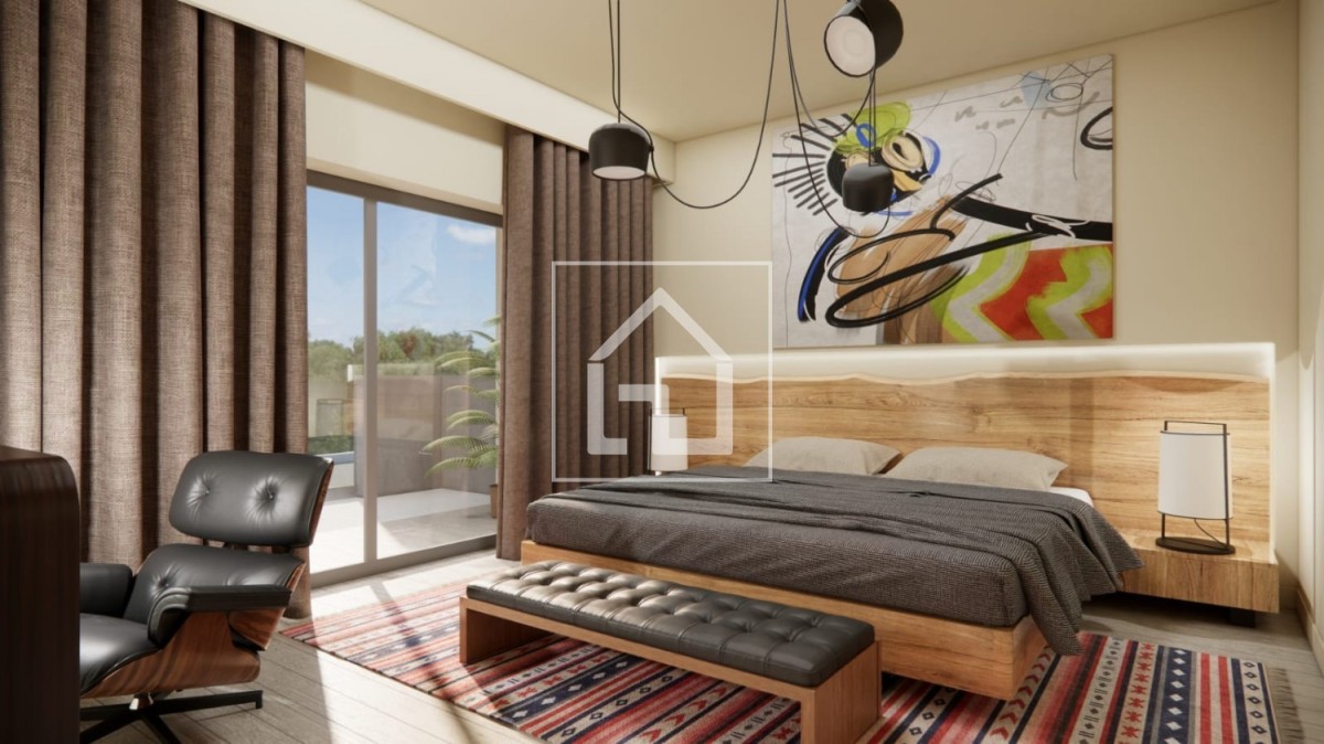 U prizemlju se nalazi prostrani dnevni boravak povezan s blagovaonicom i moderno opremljenom kuhinjom, kupaonica te terasa idealna za opuštanje. Unutarnje stubište vodi na kat gdje se nalaze četiri udobne spavaće sobe, još jedna kupaonica i balkon.