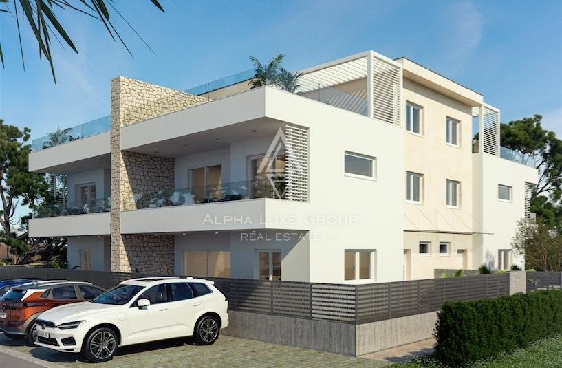ALPHA LUXE GROUP ekskluzivno prodaje novu modernu dvojnu kuću udaljenu samo 1 km od pješčanih plaža Kanegre sa lijepim pogledom na prirodu i djelomičnim pogledom na more.