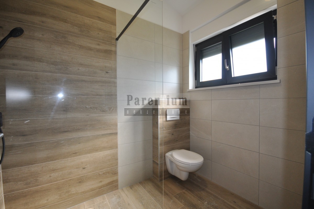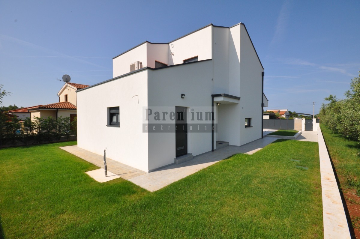 U malom mjestu u okolici Poreča prodaje se ova lijepa, moderna kuća sa bazenom. Kuća je smještena na rubu naselja, u mirnoj ulici.