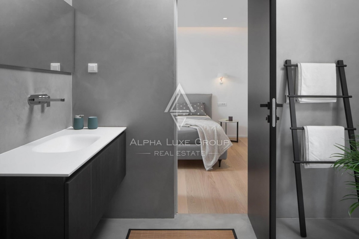Na katu su tri spavaće sobe sa vlastitim kupaonicama i obiljem prirodnog svjetla kroz velika panoramska staklena vrata koja povezuju unutarnji prostor s eksterijerom.