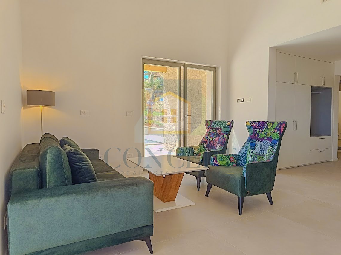 Strop u dnevnom boravku doseže visinu do 4,5 metra, dok su i u spavaćim sobama zadržani visoki stropovi. Podovi u dnevnim prostorima i kupaonicama obloženi su talijanskom keramikom, a u spavaćim sobama su troslojni parketi od bijelog hrasta. Jedan unutarnji zid obložen je kamenom, a prozori i vrata izrađeni su od drveta, dok su vanjski prozorski okviri izrađeni od kamena. Dvije vanjske fasadne površine također su djelomično obložene kamenom.