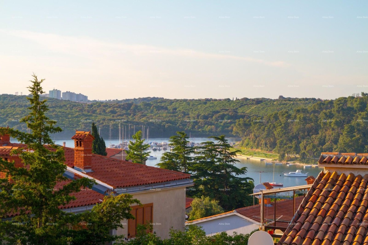Apartman od 96 m² s dvije spavaće sobe, kuhinjom s blagovaonicom i dnevnim boravkom, kupaonicom i terasom s prekrasnim pogledom na more, Pulu i borovu šumu.