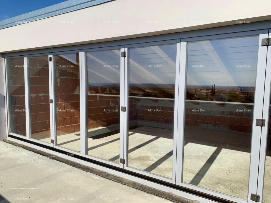 Velike staklene stijene otvaraju prekrasne panorame prema moru, Nacionalnom parku Brijuni, gradu Puli i starim krovovima slikovite Galižane.