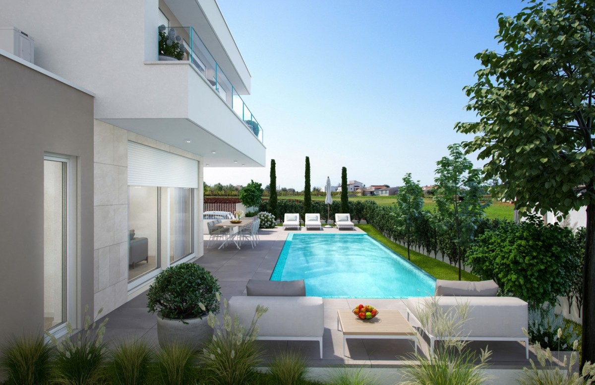 Prodaje se moderna vila u blizini Poreča, smještena na mirnoj lokaciji, idealnoj za obiteljski život ili odmor. Vila se prostire na dvije etaže – prizemlje i kat – te nudi spoj luksuza, funkcionalnosti i predivnih mediteranskih pogleda.