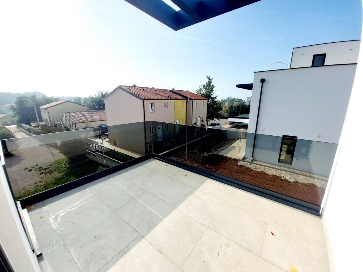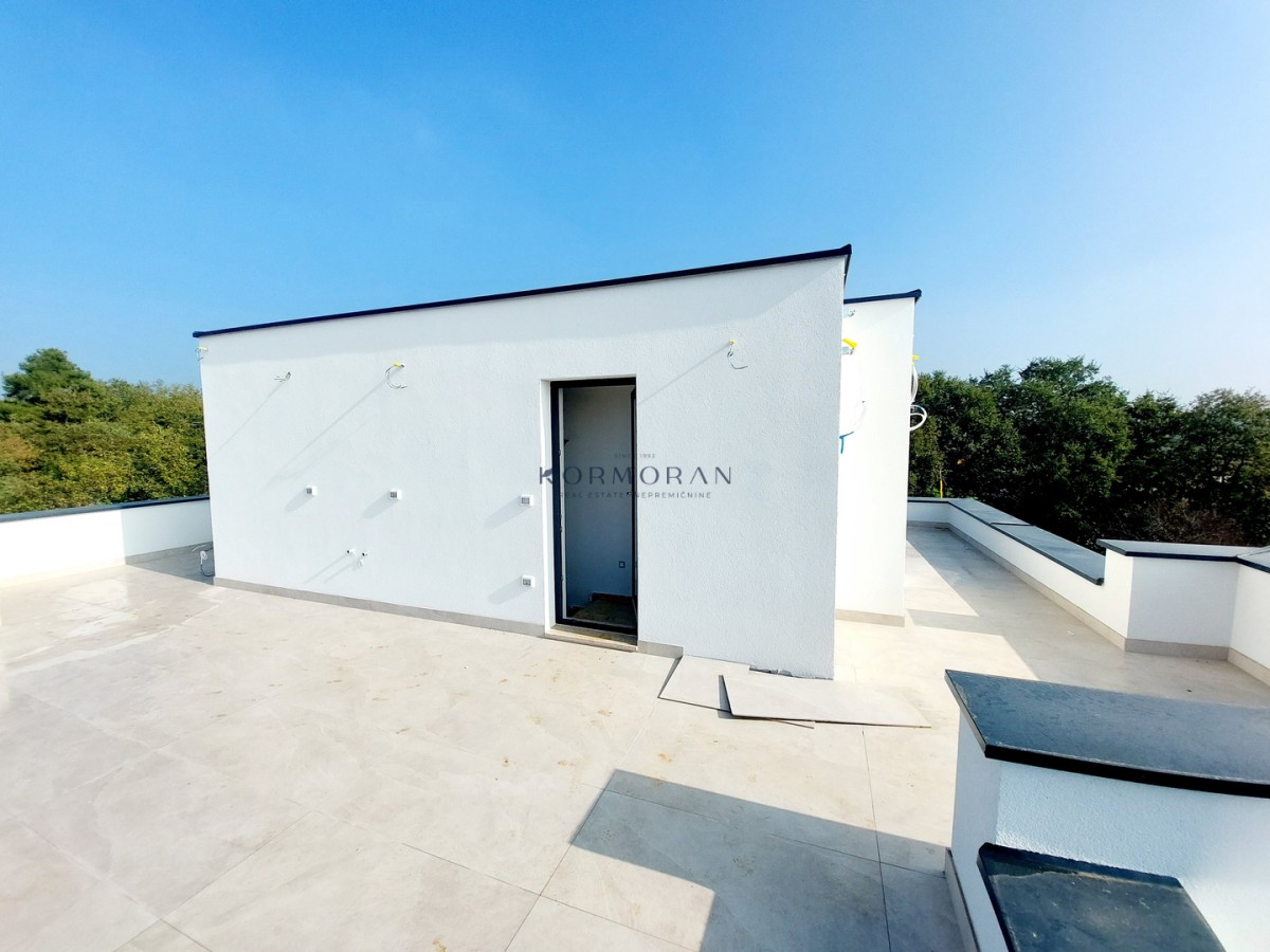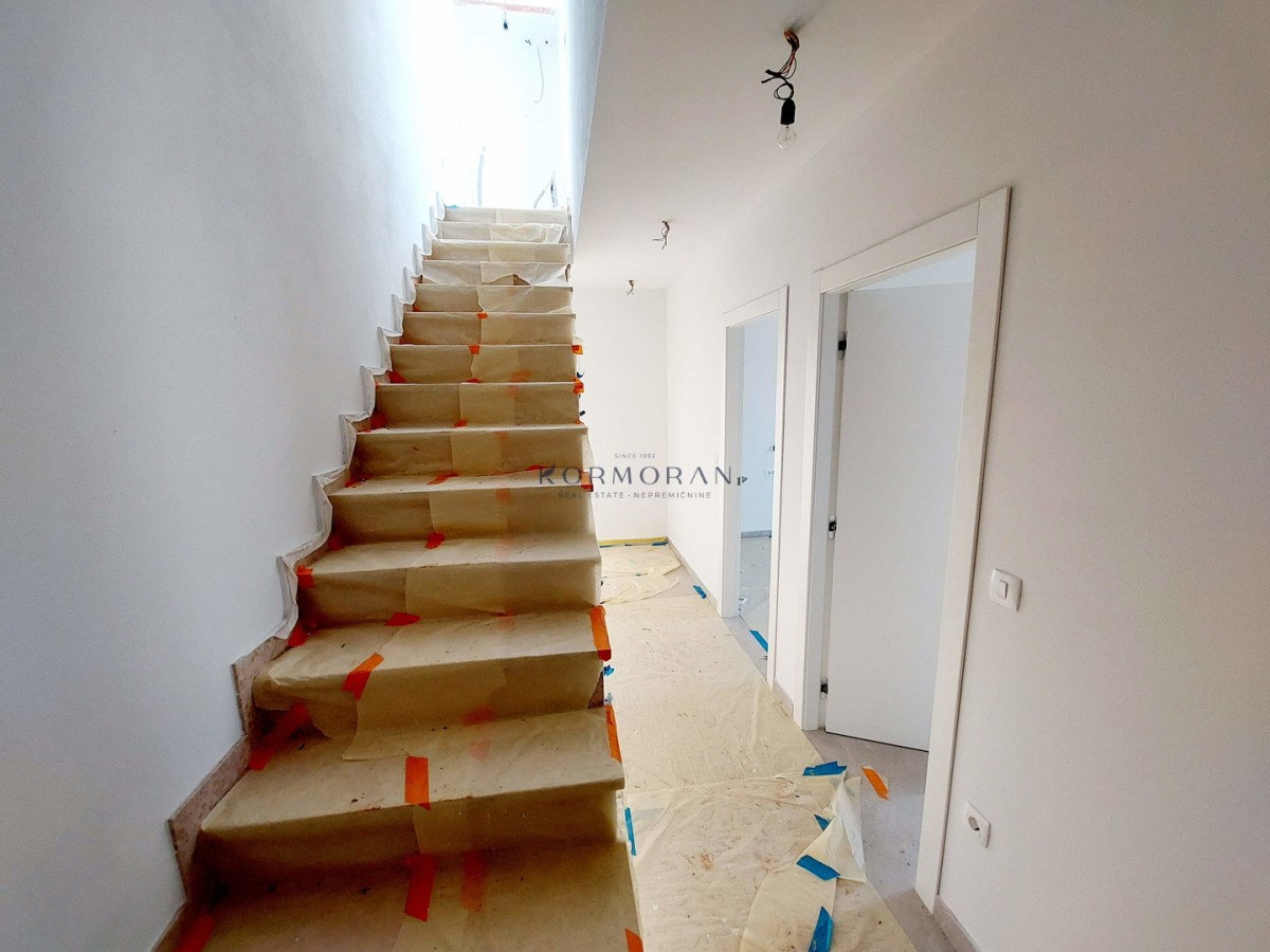 Na prodaju je nova kuća u nizu, smještena u Karigadoru, samo 350 metara od mora. Kuća ima 176,42 m2 raspoređena na tri etaže: prizemlje (63,57 m2) s prostranim dnevnim boravkom i kuhinjom, prvi kat (61,79 m2) s tri spavaće sobe i kup, te krovnu terasu (51,06 m2) s pogledom na more.