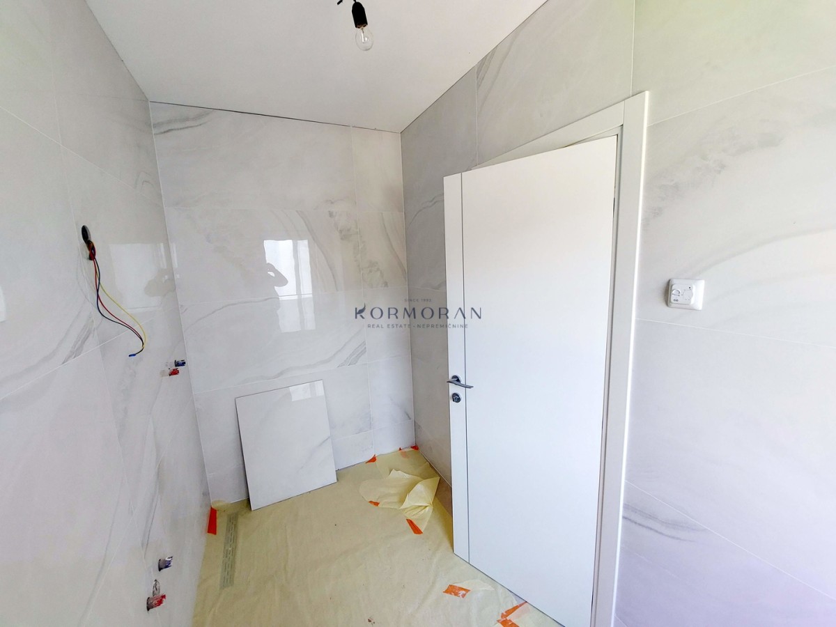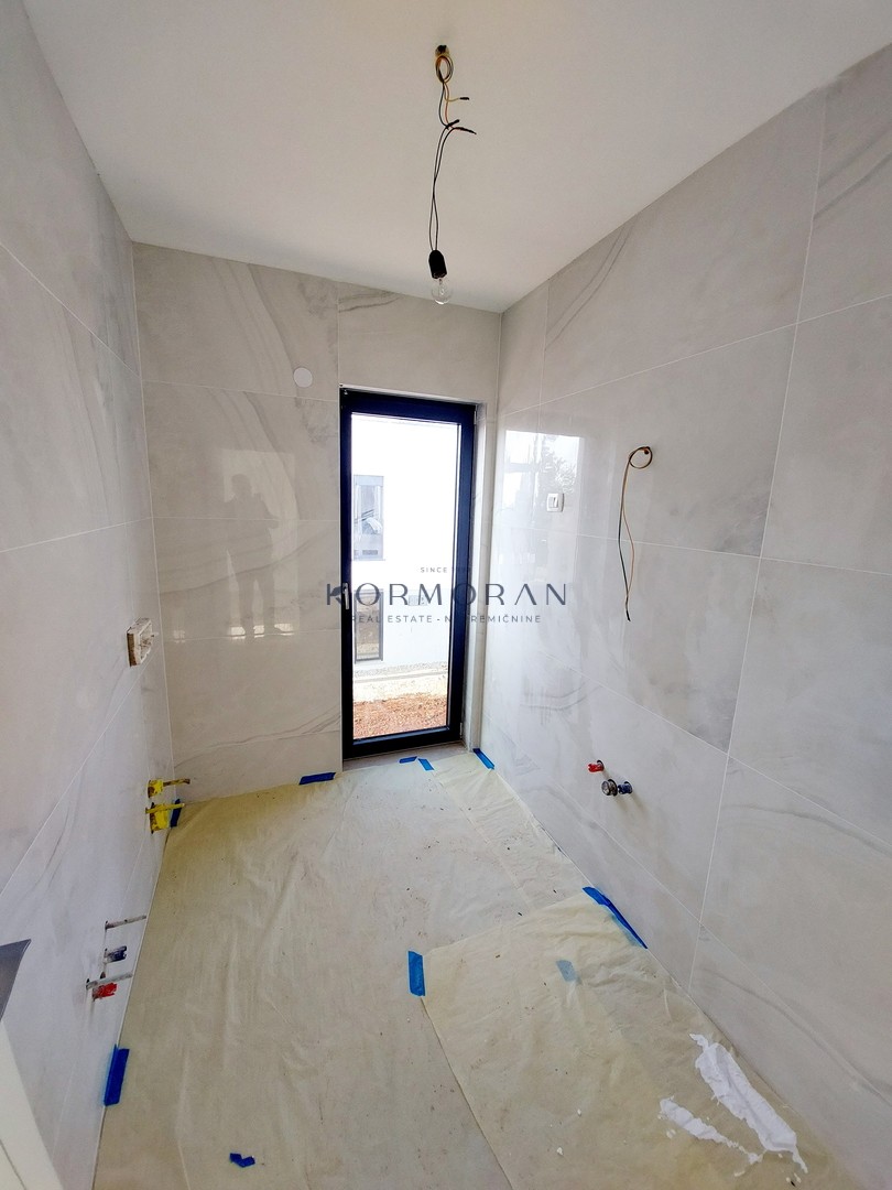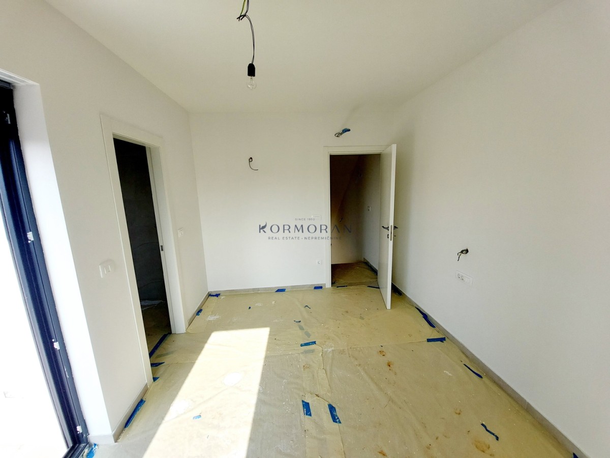 Na prodaju je nova kuća u nizu, smještena u Karigadoru, samo 350 metara od mora. Kuća ima 176,42 m2 raspoređena na tri etaže: prizemlje (63,57 m2) s prostranim dnevnim boravkom i kuhinjom, prvi kat (61,79 m2) s tri spavaće sobe i kup, te krovnu terasu (51,06 m2) s pogledom na more.