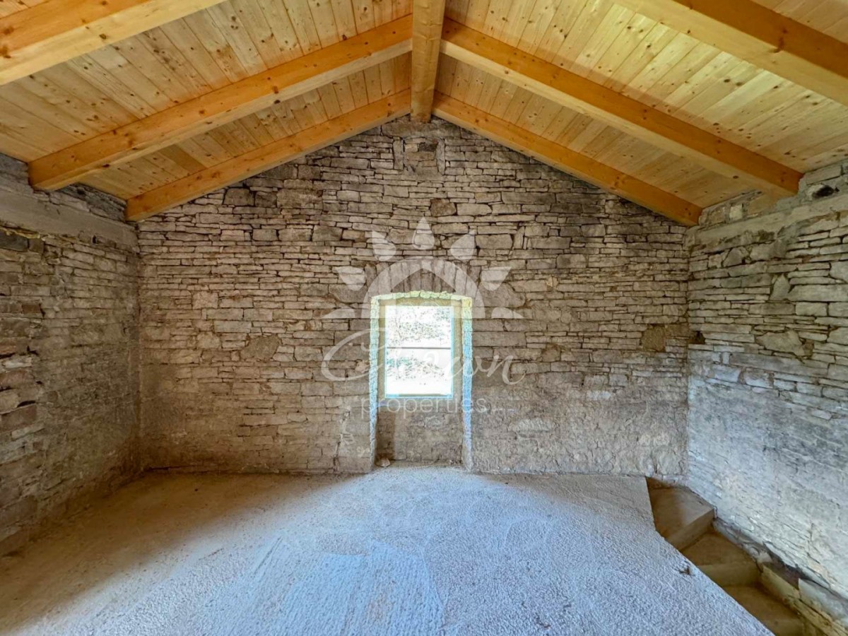 Na prodaju tipična istarska kamena kuća ukupne površine 60 m² s okućnicom od 409 m², smještena na rubu mirnog i tihog sela s nekoliko obiteljskih kuća.