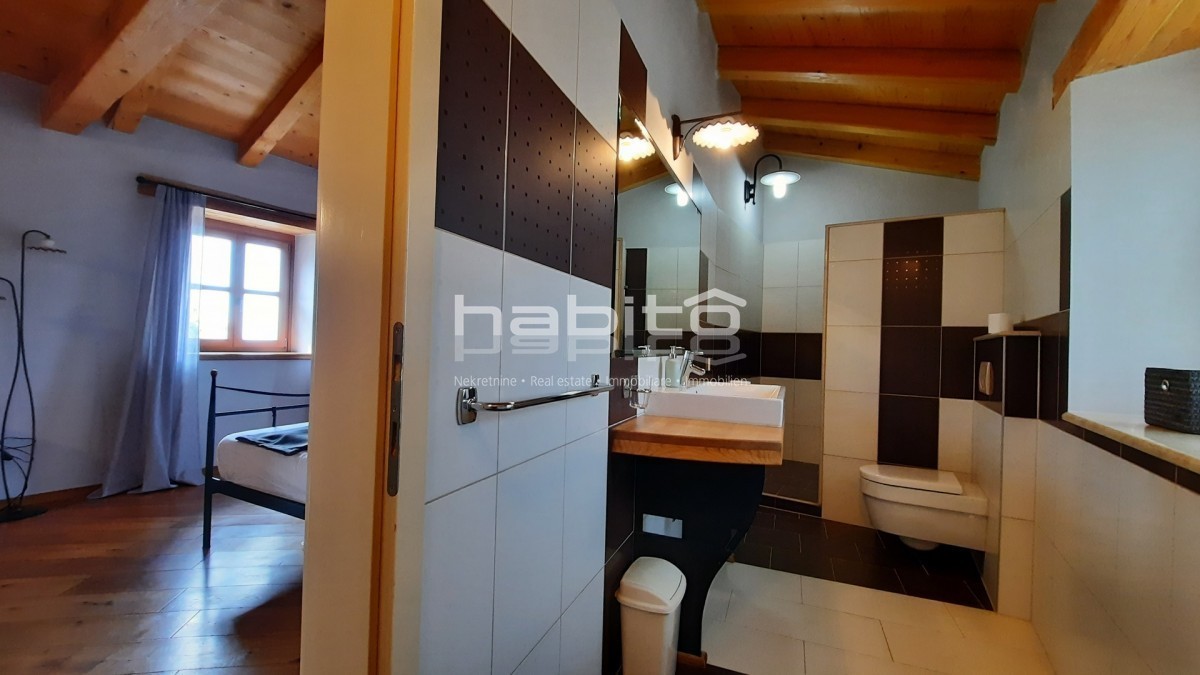 Prodaje se ova prekrasna kamena vila od 200 m2, smještena na zemljištu od 1030 m2, na mirnoj lokaciji neposredno blizu svih popratnih sadržaja a samo 13 km od mora i grada Poreča.
