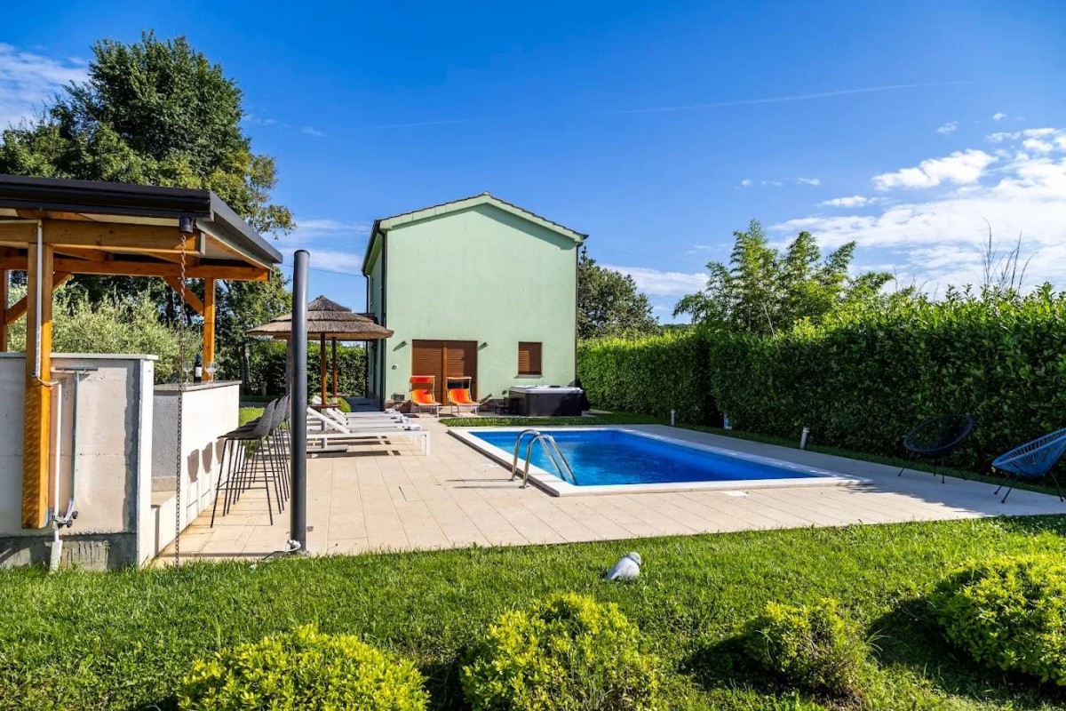 Pozicija je odlična jer se kuće nalaze na rubu sela i do prvih susjeda ima 1800 m, na prekrasno uređenoj okučnici od 1500 m2 s bazenom od 32m2 i dvije vanjske terase što ih čini idealnom lokacijom za život i odmor